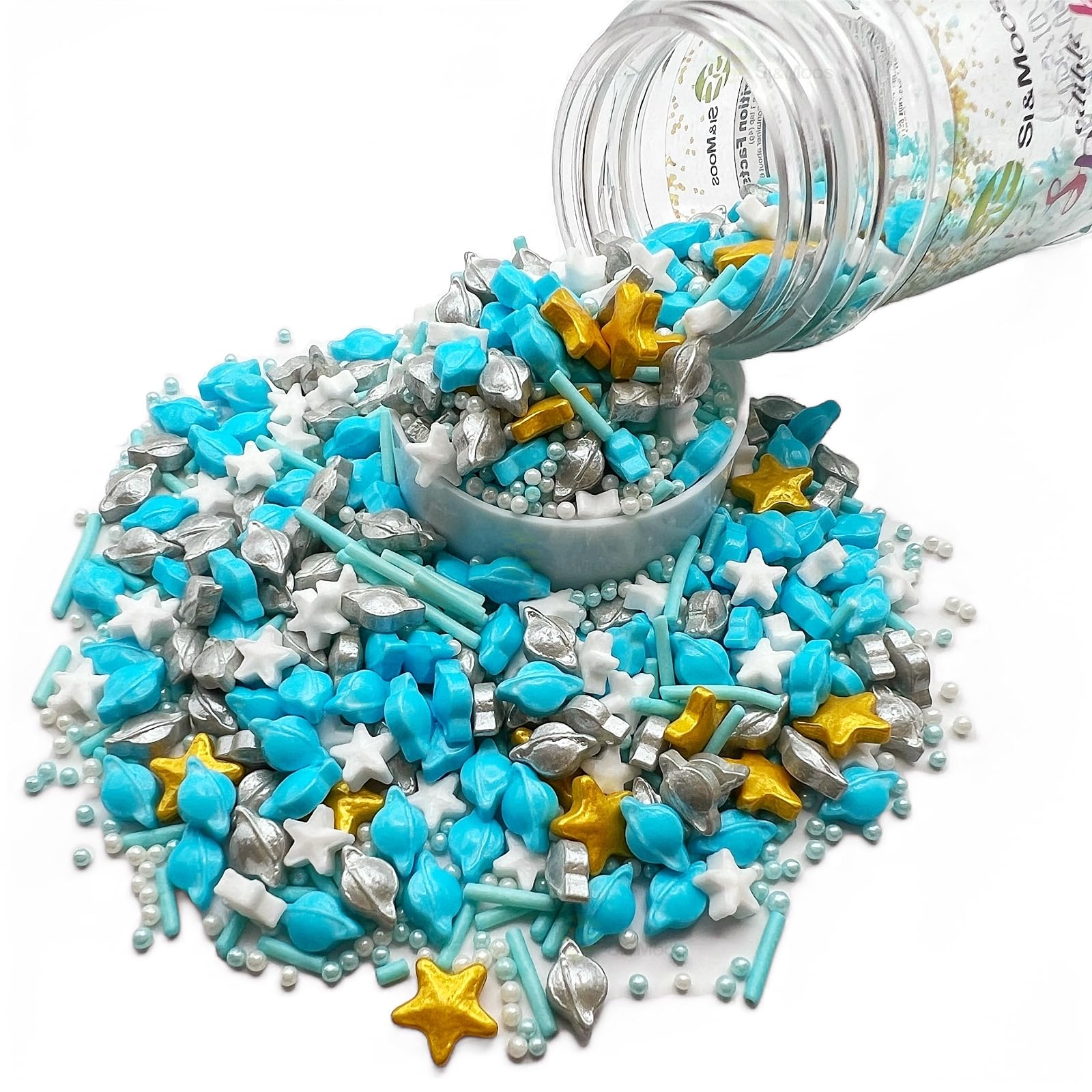 Q: Are SE Si&Moos Space Theme Sprinkles safe for children?A: Yes, SE Si&Moos Space Theme Sprinkles are made from food-grade, reliable ingredients that are GMO-free, gluten-free, nut-free, egg-free, and dairy-free, making them safe for children and suitable for vegetarians.