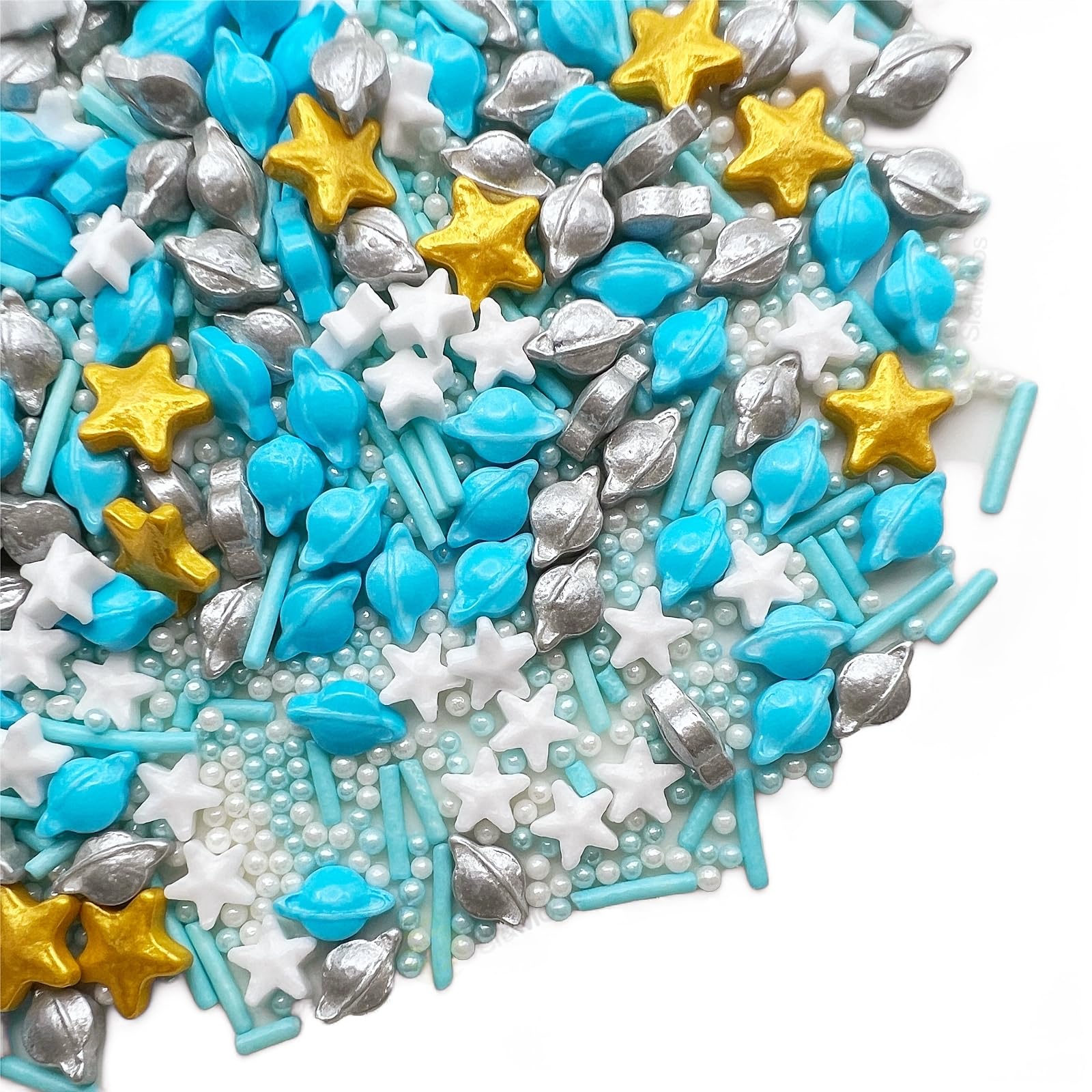 Q: How can I use these sprinkles for cake decorating?A: These galaxy sprinkles are perfect for decorating cakes, cupcakes, cookies, and other treats. Simply sprinkle them on top of your baked goods after they have cooled to maintain their shape and color.