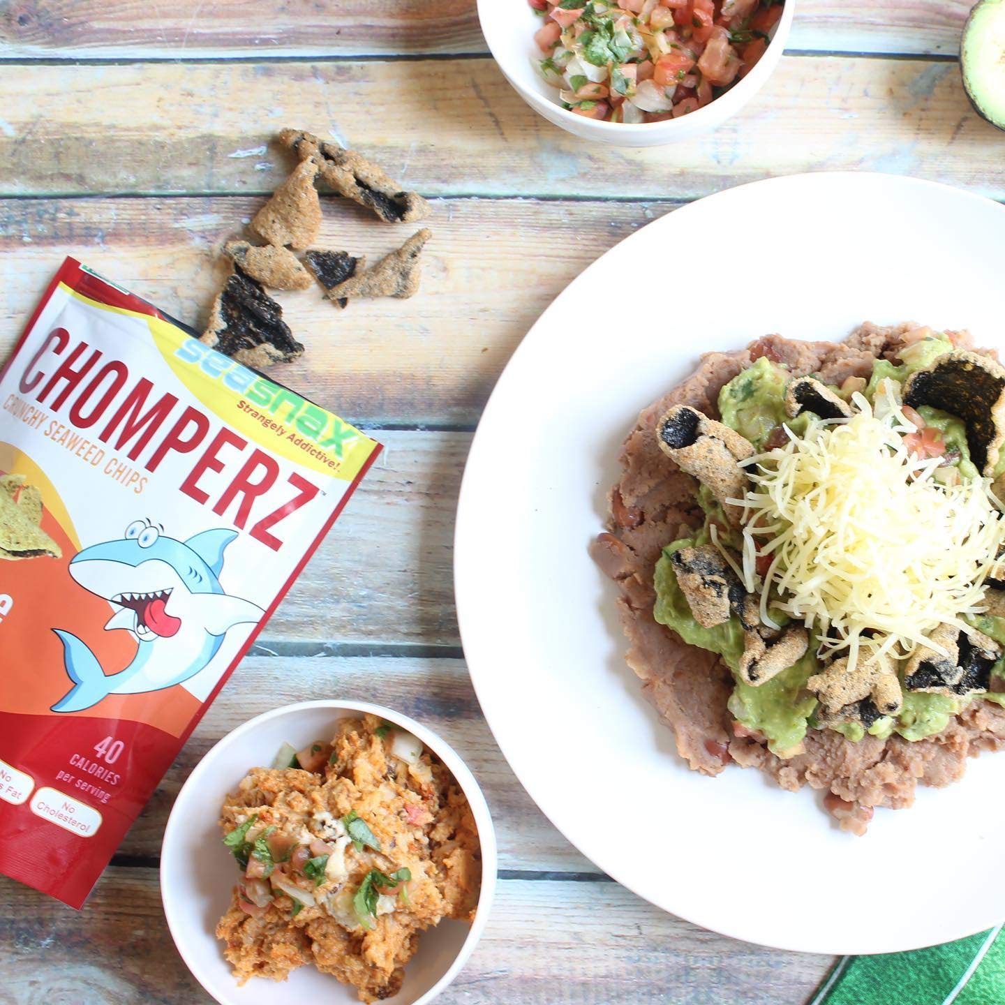 Q: How many calories are in a serving of SeaSnax Chomperz?A: Each serving of SeaSnax Chomperz Crunchy Seaweed Chips contains only 40 calories, making them a low-calorie snack option.
