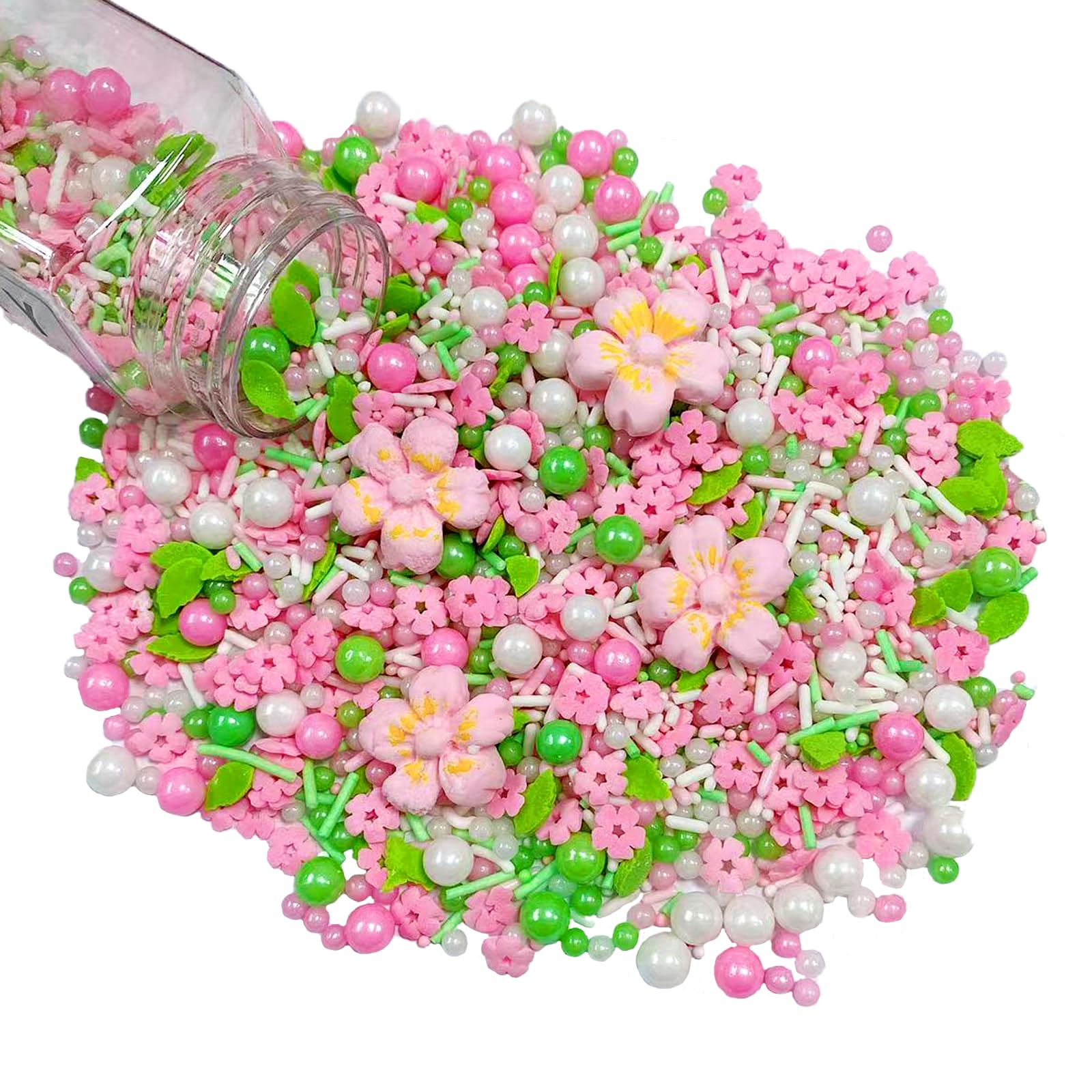 1 Bottle Pink Flowers Sprinkles Edible Spring Green Peals Sprinkles For Cake Decorating Candy Cupcake Cake Topper Cookie Baking Decorations Christmas Valentine'S Day Wedding Supplies
