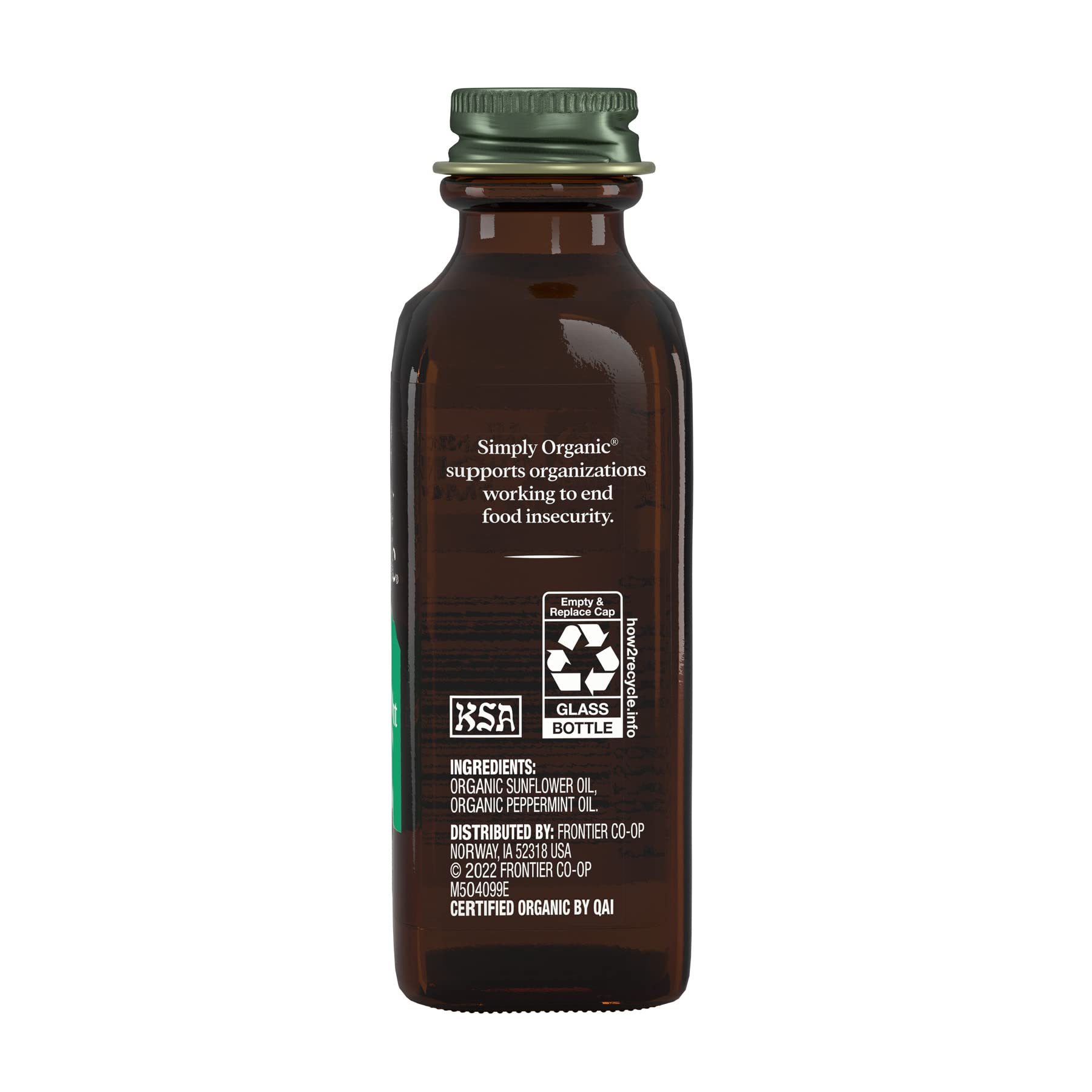 Q: What are the main ingredients in Simply Organic Peppermint Flavor?A: Simply Organic Peppermint Flavor contains pure organic peppermint oil derived from real peppermint plants, specifically Mentha piperita, combined with organic sunflower oil as a base.
