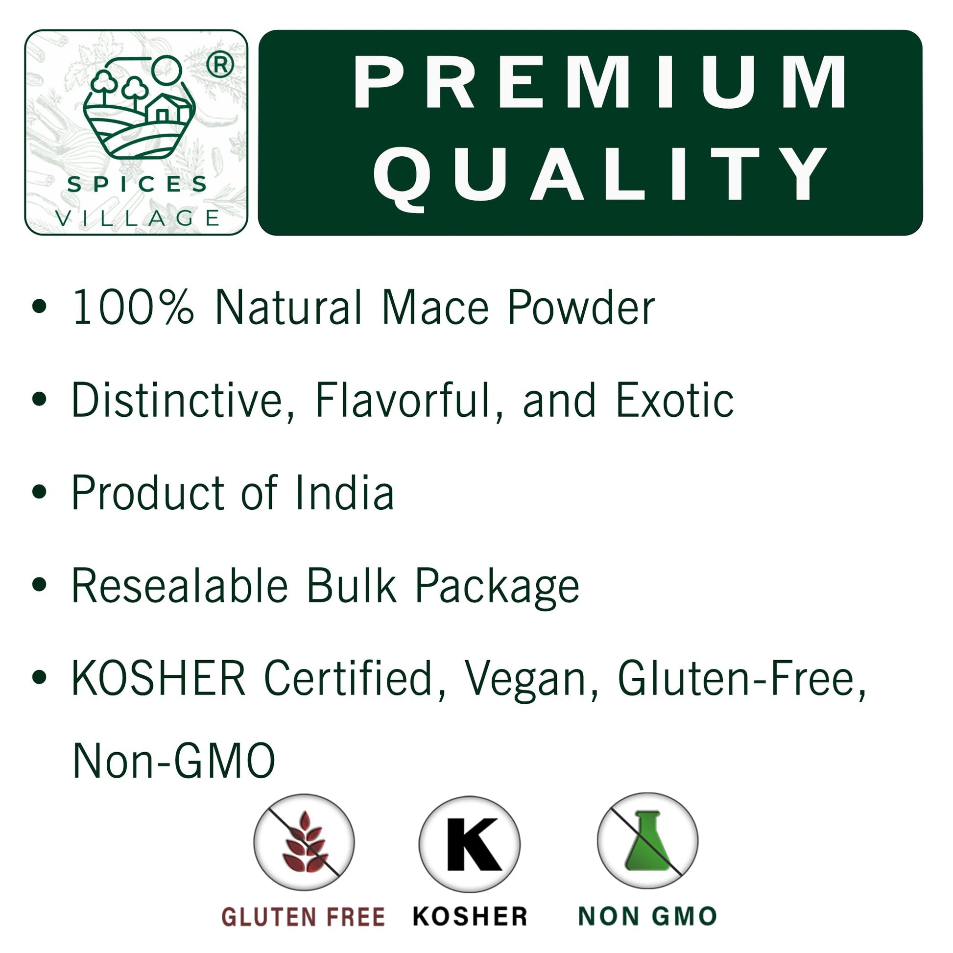 - Q: Is Spices Village Mace Powder gluten-free and non-GMO? A: Yes, Spices Village Mace Powder is gluten-free and made from non-GMO ingredients. This makes it a safe choice for those with gluten sensitivities and those looking for naturally sourced spices.