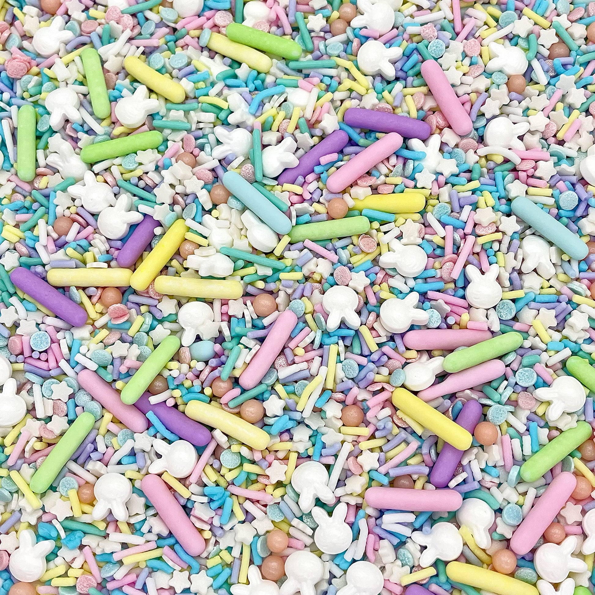 Q: What are Easter sprinkles made of?A: Easter sprinkles are made from a blend of ingredients including sugar, glucose powder, vegetable oil, and various color additives. They also contain non-toxic elements such as jimmies and nonpareils for added texture and visual appeal.