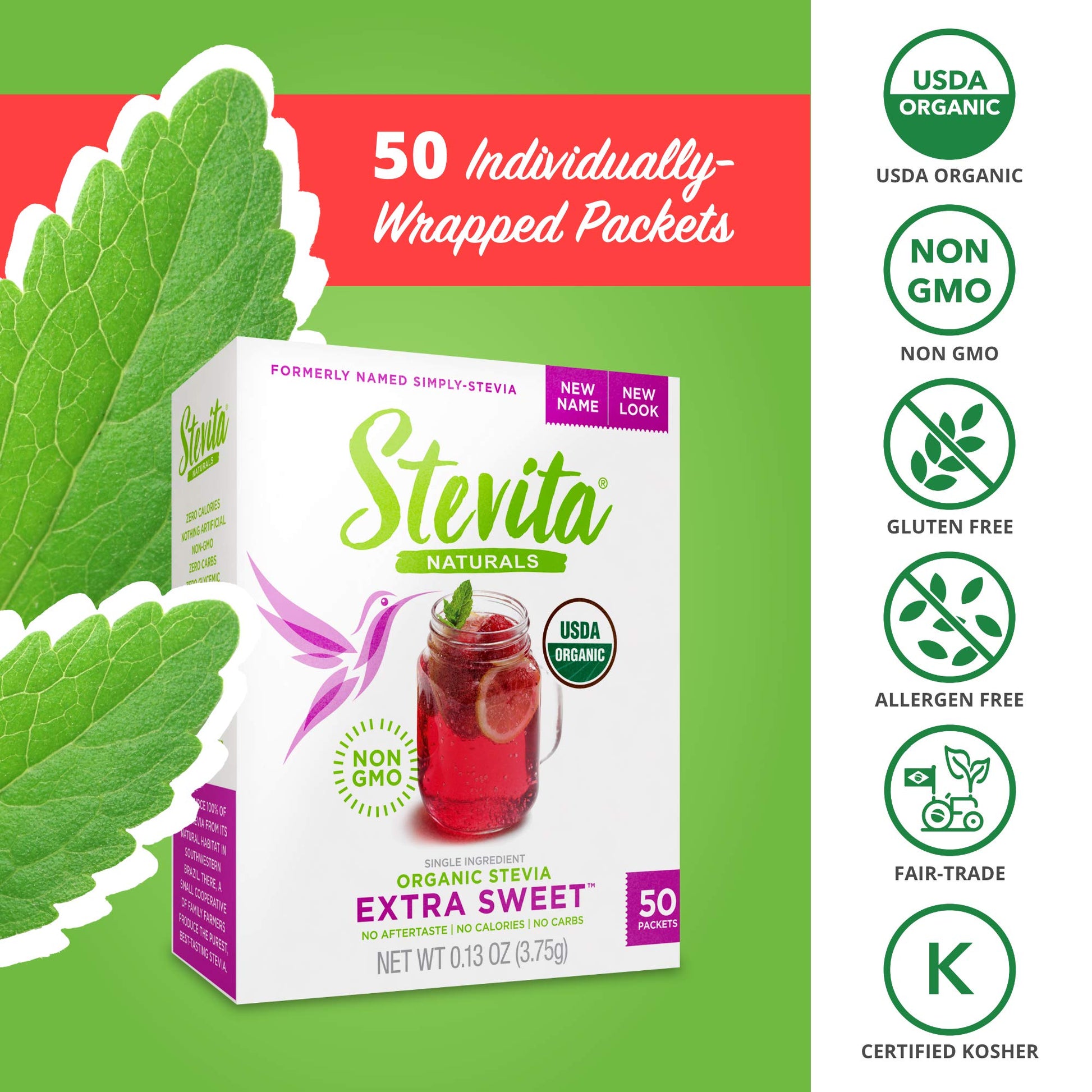 Stevita Organic Stevia Extra Sweet - 50 Packets - All-Natural, No Calorie Sweetener - Usda Organic, Non-Gmo, Vegan, Kosher, Keto