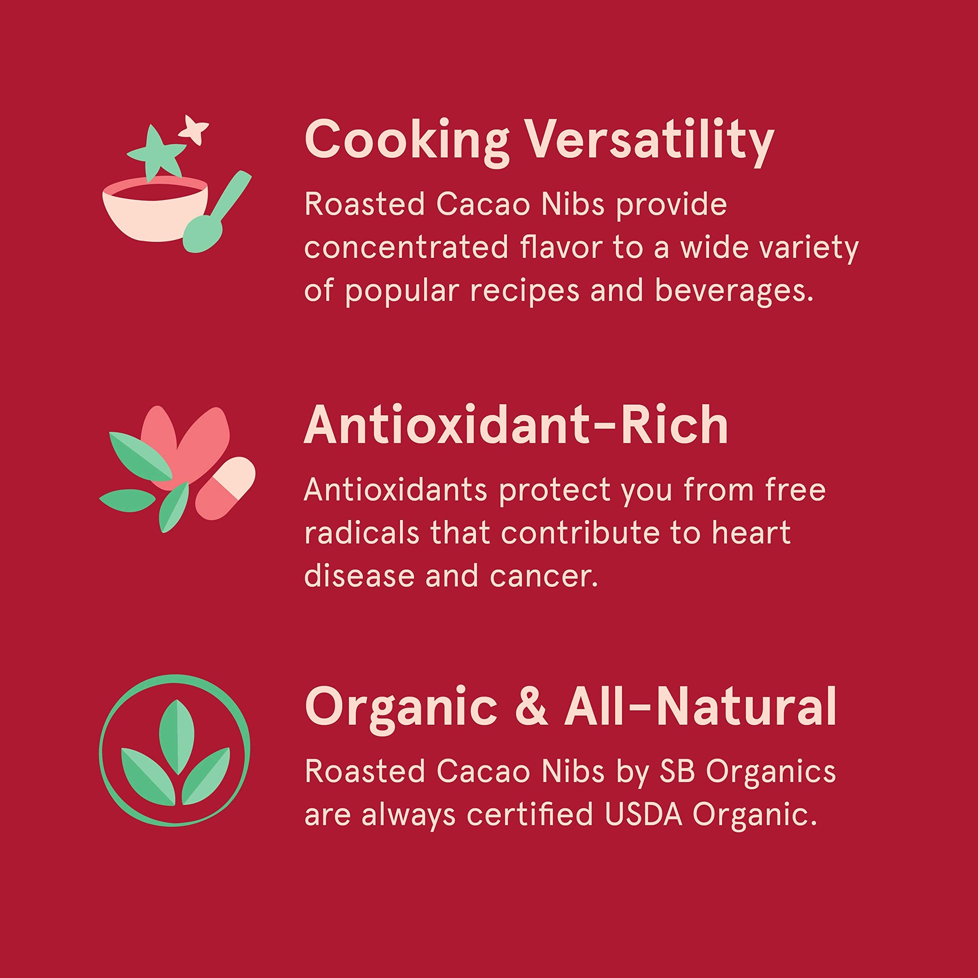 Simply Better: Our Process Begins With The Cacao Tree In The Lush Forests Of Peru. We Harvest And Ferment The Cacao Beans, Crush Them Into Pieces, Then Roast Them To Enliven The Bold Flavors And Crunchy Texture. | Nutrient Rich: Add This Excellent Source Of Manganese And Antioxidants To Your Mole Sauce, Almond Butter, And Trail Mix To Capture The Truest Essence Of Chocolate Without The Negative Health Effects Of Added Sugar. | Certified Organic: Roasted Cacao Nibs By Sun Bay Foods Is Certified Usda Organic. Certified By Earth And Certified Vegan By Vegan Verified. Made Without Gmos, Additives, Or Preservatives. | Quality Assured: Your Health Matters To You, So It Matters To Us. Our Roasted Cacao Nibs In Addition To Every Sun Bay Foods Product Is Third-Party Lab Tested For Purity, Quality, And Safety. | Our Mission: At Sun Bay Foods, We Care Not Only About The Quality Of Our Products, But How We Care For The Earth. That'S Why We'Re Dedicated To Bringing You Nutritious, Sustainably-Sourced Products From All Around The World. This Is Taste You Can Savor, And Quality You Can Count On.