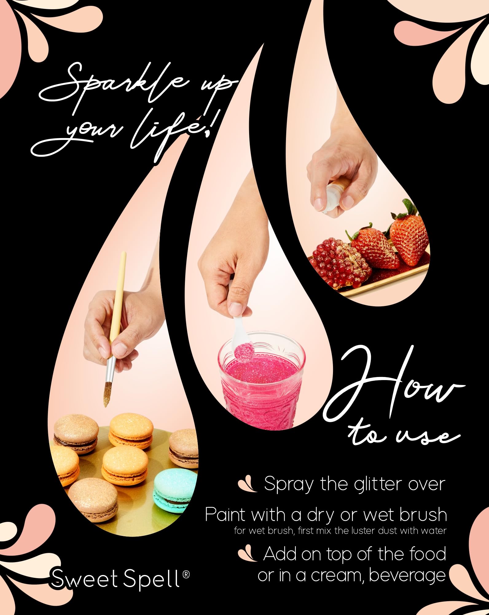 Elevate Your Culinary Creations With Sweet Spell Luster Dust Powder. This Shimmery Glitter Dust Adds A Touch Of Enchantment To Desserts, Cakes, Cocktails, And Drinks, Turning Them Into Mesmerizing Masterpieces. Crafted To The Highest Standards, Our Luster Dust Is 100% Edible, Vegan, And Gluten-Free, Ensuring Both Quality And Inclusivity. Elevate Your Treats With A Sprinkle Of Magic. Order Now To Awaken The Artist In Your Kitchen.