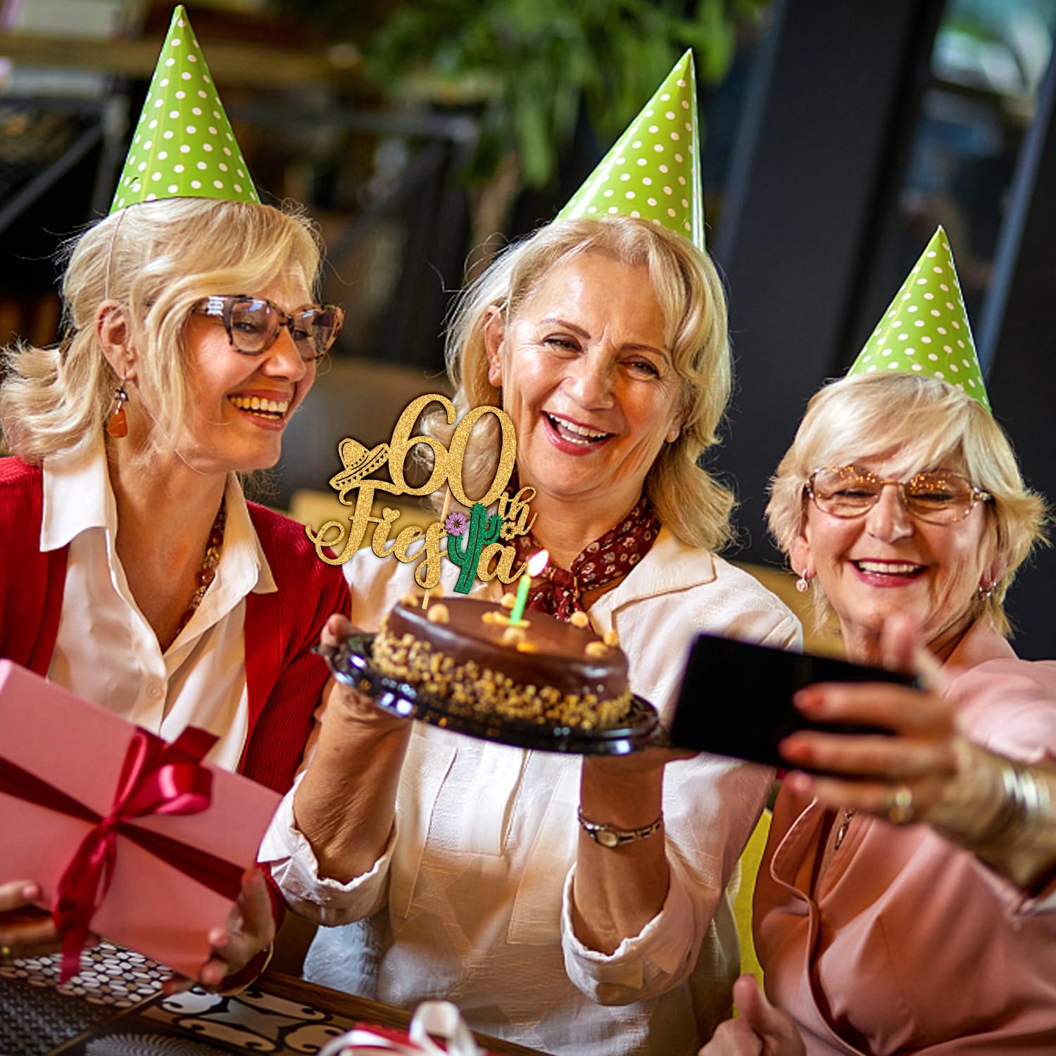 Package: Inclued 1 Pcs Of Cake Topper Of 60Th Fiesta .The Product Has Been Assembled Not Need Glue Or Diy . Measure: The Cake Toppers Are Approx 5.5 Wide And 4.5 High. Great Ideal Size For Most Size Cakes. Note: 1.Due To The Light And Monitors Effect, Colors May Have Lightly Difference. 2.Please Allow 1-2Cm Errors Due To Manual Measurement. Thank You For Your Understand! 3.The Bottom Of The Cake Topper Is Made Of Wooden Sticks, Please Pay Attention To Your Child To Avoid Accidents.