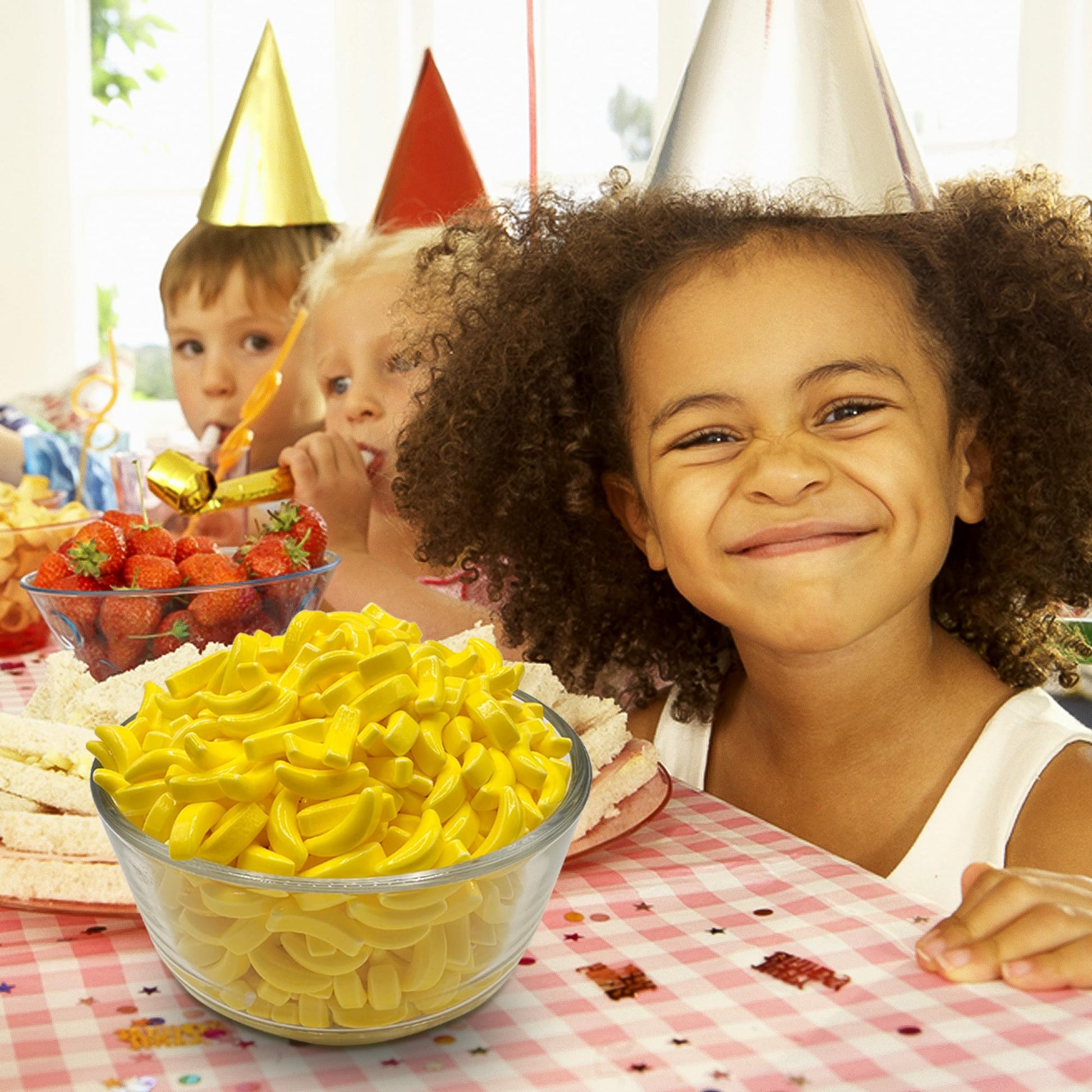 Banana lovers, this ones for you! Dive into a full 1-pound bag of banana flavored hard candy-no mixes, no surprises, just bold, sweet, and fruity banana goodness in every single piece. These bright yellow banana candies are shaped like tiny bananas and deliver a satisfying crunch thatll take you straight back to the candy aisle of your childhood. Perfect for events, candy buffets, birthday parties, or your personal snack stash, this banana candy bulk option brings major nostalgic vibes and even bigger flavor. Whether you remember them as banana shaped candy, banana head candy, or just your favorite yellow candy, this bag is exactly what youve been searching for. Packaged in a heat-sealed bag to lock in freshness and quality, these banana only candies are ideal for themed events, candy dishes, or gifting. They also make a fun and fruity addition to gift baskets, dessert bars, or Minion banana candy-themed parties. If you crave the crisp snap of banana flavored hard candy, love the flavor of banana brittle, or just want to skip the red ones and go straight for the yellows, this bulk bag delivers everything you need. Bright, bold, and bursting with tropical sweetness, its the ultimate treat for true banana fans