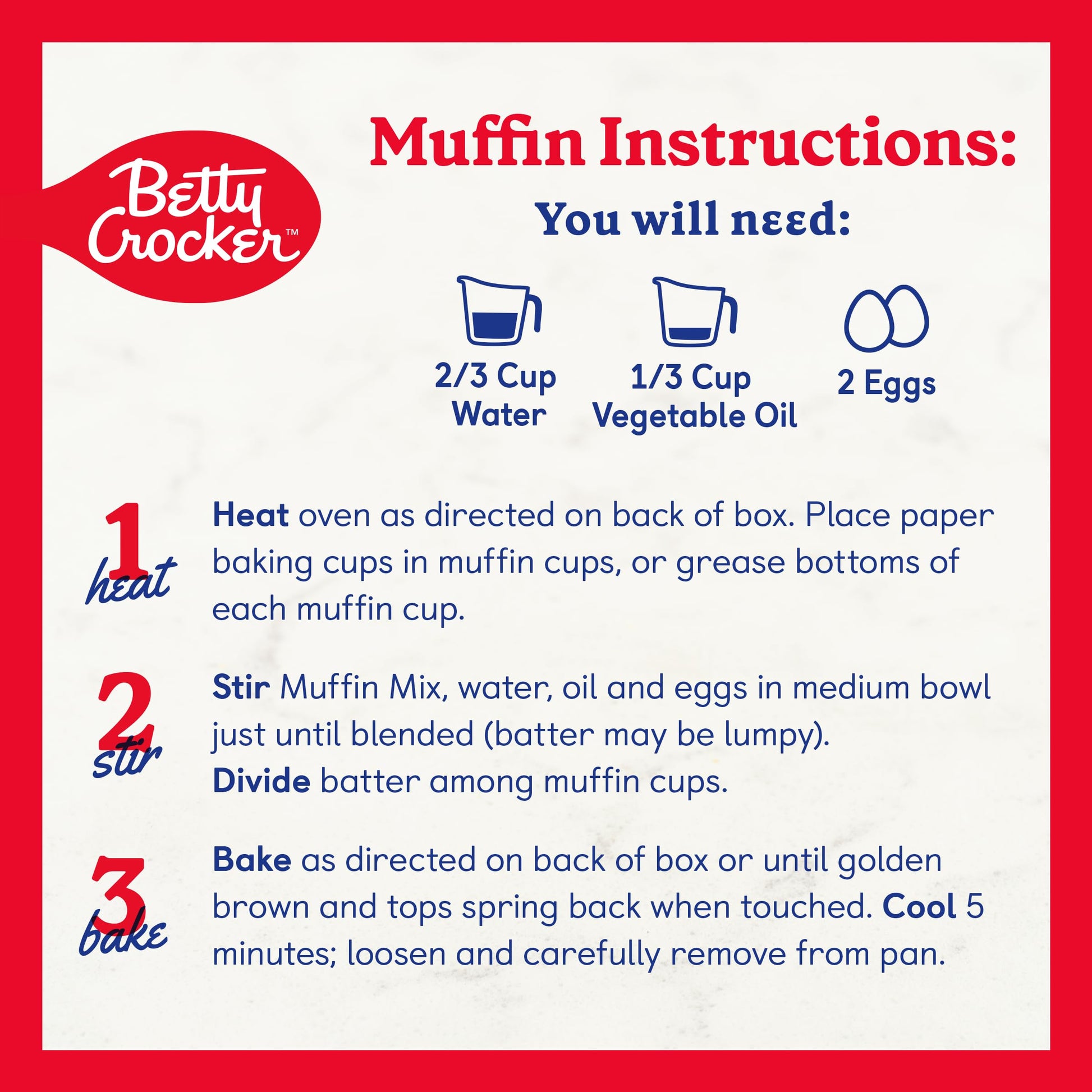 Fresh, Fluffy Banana Nut Muffins Have Never Been Easier. Just Add Water, Oil And Eggs, Bake And Enjoy! With Betty Crocker Banana Nut Muffin & Bread Mix, A Home-Baked Banana Nut Sensation Is Just Minutes Away. Best Of All, This Easy Treat Is Made With Real California Walnuts. Use As Muffin Mix Or Bread Mix For An Easy Breakfast Addition Or Snack, Or Explore Betty Crocker Recipes For A New Take On This Classic Treat. For More Than A Century, Betty Crocker Has Been A Popular Creator Of Easy, Delicious Recipes. Today, The Betty Crocker Kitchen Is Still Providing Convenient, Tasty Dessert Mixes, Frostings, And Convenient Meal Options And Side Dishes. And Today, You Can Still Find Those Same Products You Grew Up With On Grocery Shelves.