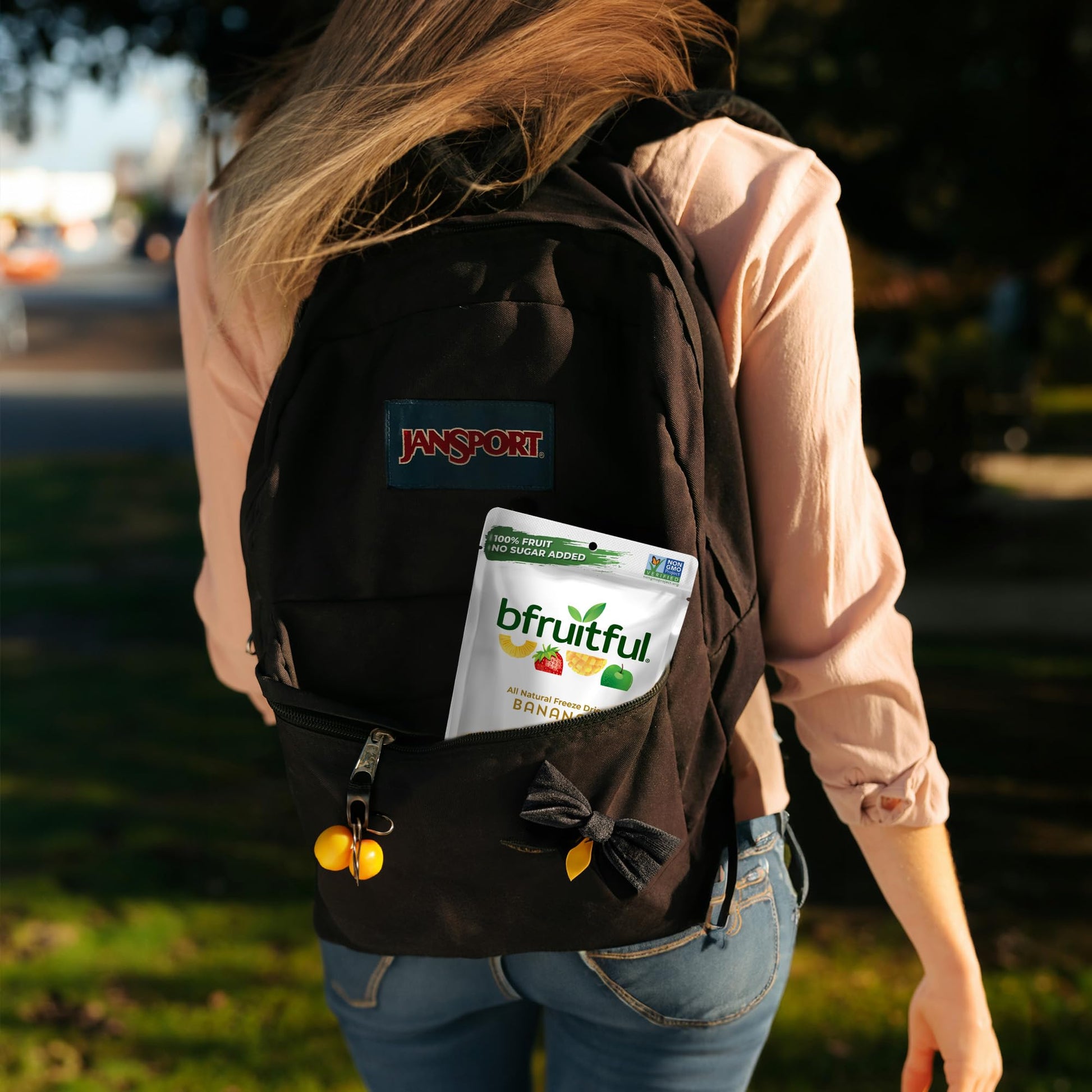 Q: What is the serving size for bfruitful freeze-dried bananas?A: Each single-serve packet of bfruitful freeze-dried bananas weighs 16g (0.56 oz), making it a convenient option for on-the-go snacking.