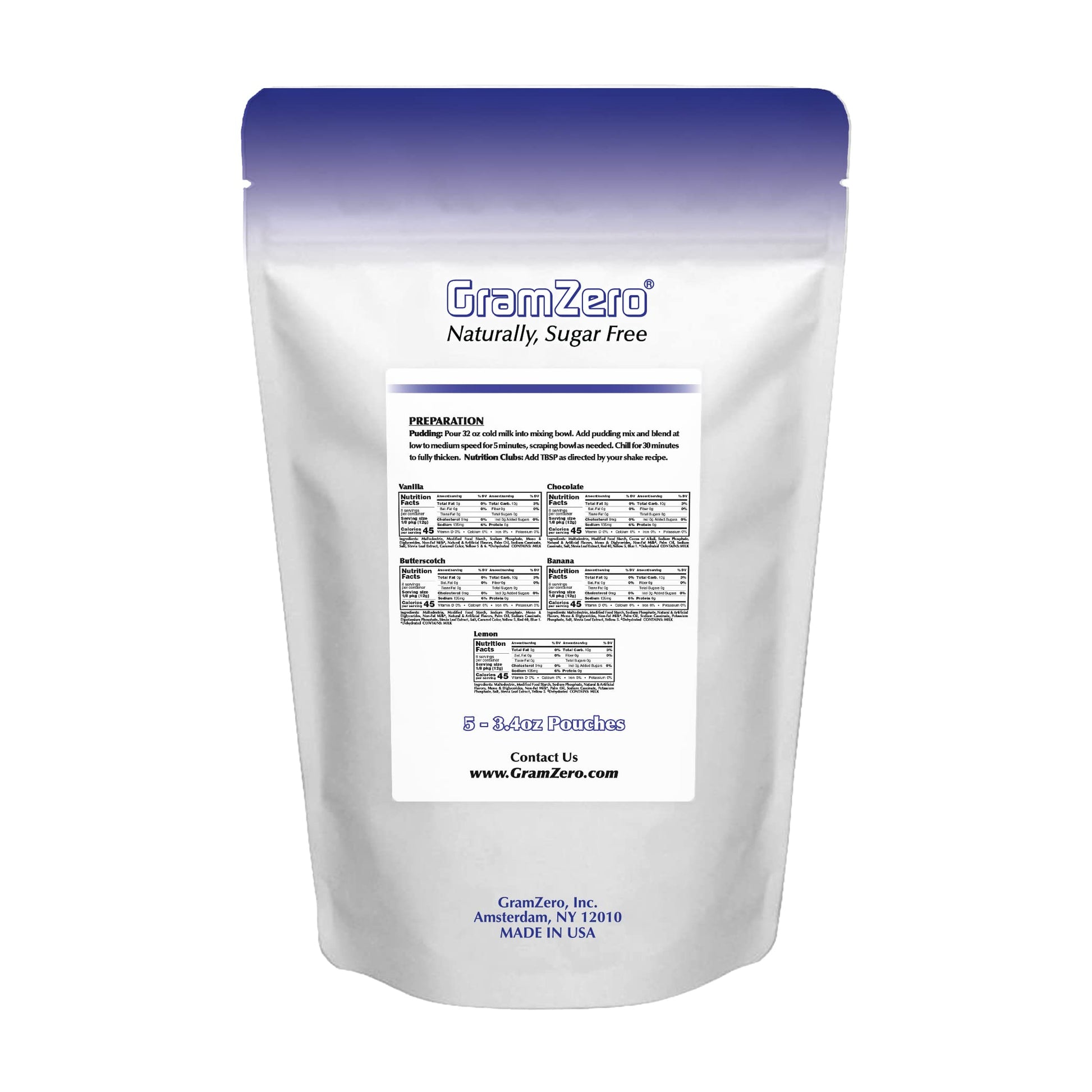 Gramzero Naturally, Sugar Free Pudding Mix Is Sweetened With Organic Stevia For The Best Easy Low Carb Dessert! Each Sugar Free Instant Pudding Mix Tastes Just Like The Sugar Sweetened Puddings, However With No Unwanted Aftertaste, No Sugar Alcohols And No Artificial Sweeteners!Looking For Super Easy Low Carb Desserts? Youve Found The Best Stevia Pudding Mix That Makes A Quick Low Carb Dessert That Actually Tastes Good! Gramzero Products Support A Low Carb Diet And This Sugar Free Pudding Mix Makes The Best Sugar Free Dessert That Is Definitely A Low Carb Treat!Our Low Carb Pudding Mixes Are Also Perfect To Flavor Nutrition Shakes! Build Your Best Meal Replacement Shakes With Gramzero Sugar Free Pudding Mix Flavors, You Wont Be Disappointed! At Gramzero, We Are A Family Owned And Operated Company. Our Mission Is To Provide Easy To Use, Great Tasting And Naturally, Sugar Free Products That Help Encourage Healthy Living! All Gramzero Products Are Sugar Free And Low Or Zero Calorie, Sweetened Naturally Only With Organic Stevia!Thank You So Much For Supporting Our Business! The Gramzero Familyinstructions - Easy Low Carb Dessert: Pour 4 Cups (32 Fl Ounces) Of Cold Dairy Milk Into A Mixing Bowl And Add The Sugar Free Pudding Mix Pouch Contents. Blend On Low To Medium Speed With An Electric Hand Mixer For 4-5 Minutes, Scraping Sides Of Bowl As Mixing. Place In The Fridge To Chill For 30 Minutes To 1 Hour To Fully Thicken, Then Enjoy! As A Sugar Free Pudding Mix, A 3.4 Ounce Pouch Makes Approximately 8 - 4 Ounce Servings.Instructions - Nutrition Club Shake: Use As The Creamy Flavoring Powder, Measured As Directed By Your Club'S Meal Replacement Shake Recipe.
