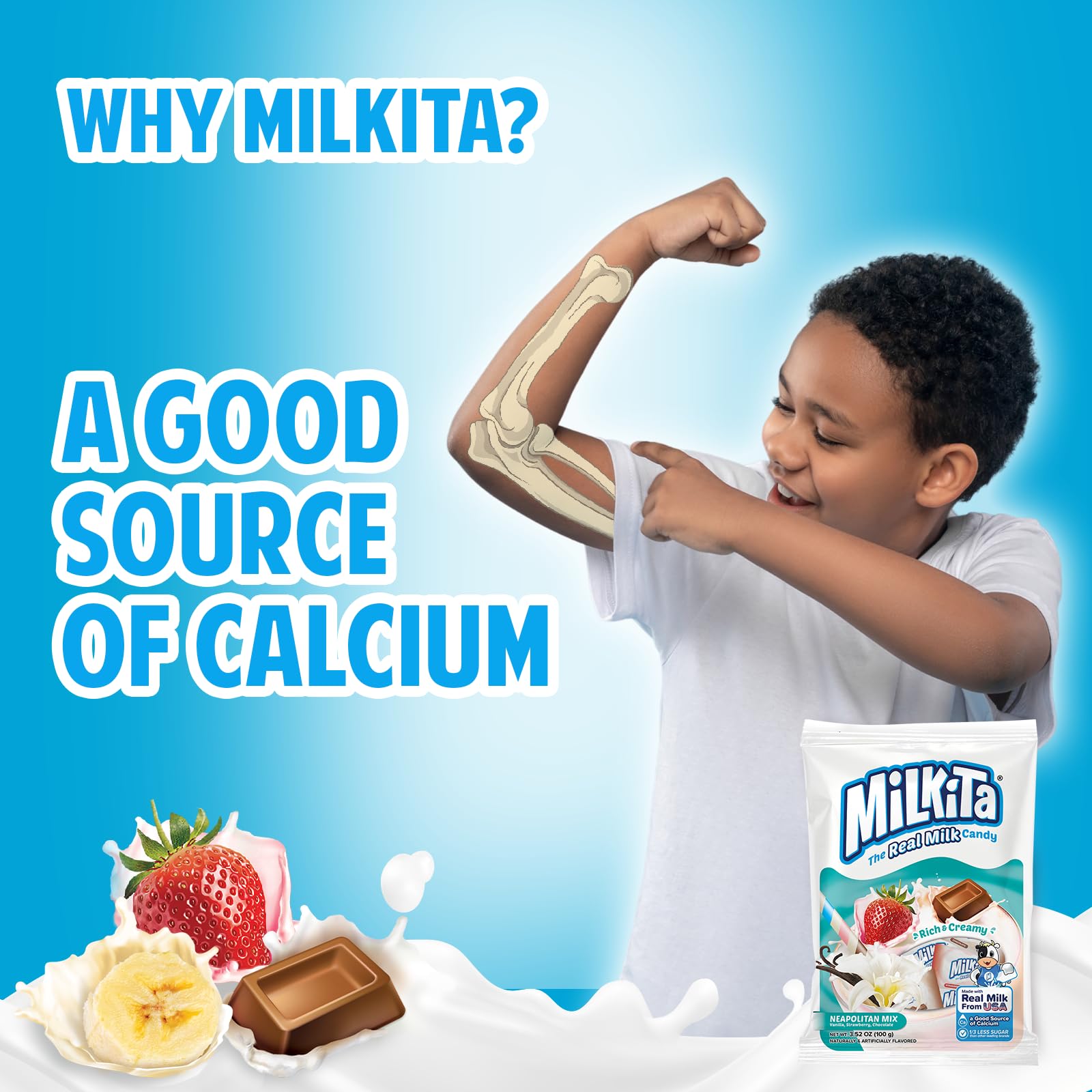 Q: What makes Milkita lollipops a healthier candy option?A: Milkita lollipops are a healthier candy choice because they are gluten-free, contain no corn syrup or gelatin, and are made with real milk. Each serving provides 10% of your daily calcium needs, making them a guilt-free treat that supports strong bones.