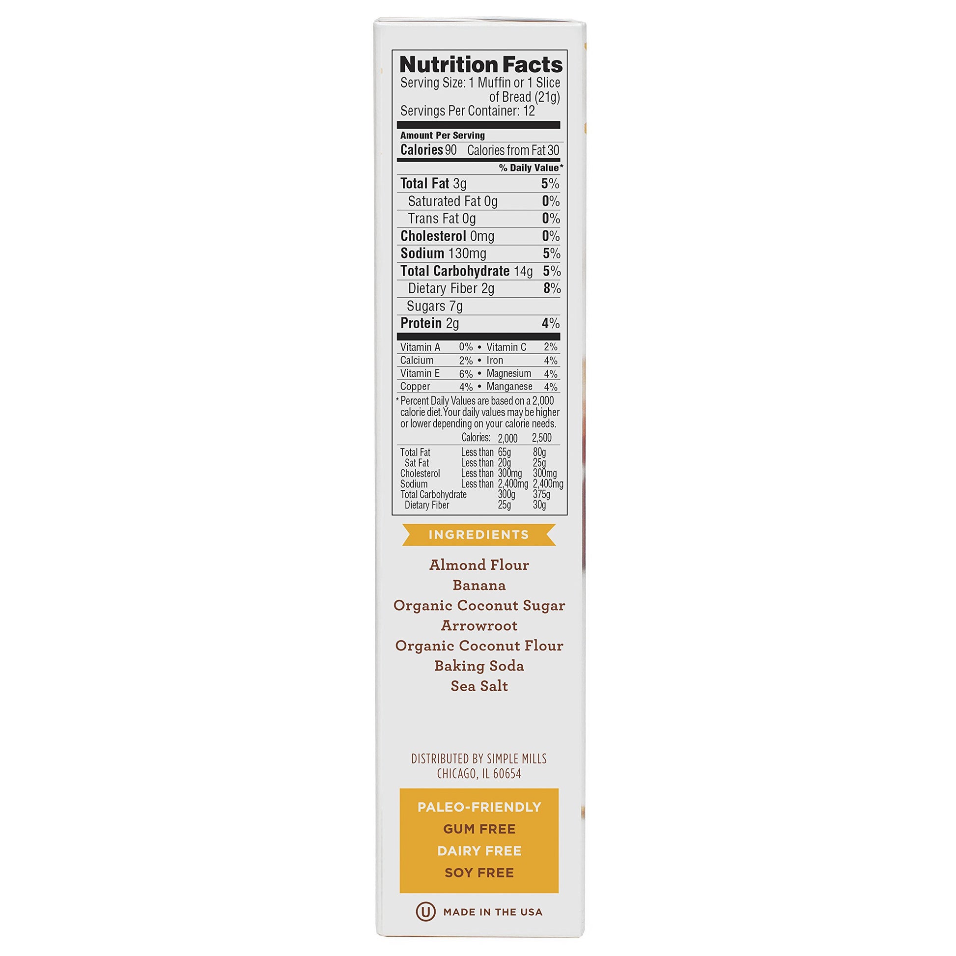 Details:Br Simple Mills Banana Muffin And Bread Baking Mix Is Made With Almond Flour, Coconut Flour And Coconut Sugar For Nutrient Value. This Paleo-Friendly Mix Contains No Gluten, Dairy Or Soy. Simply Combine This Box Mix With Eggs, Oil And Water For A Delicious Muffins Or Bread Dough. See The Nutrition Facts Panel For Allergen Information. Includes One 9 Oz. Box Of Simple Mills Banana Muffin And Bread Baking Mix. Simple Mills Enriches Lives And Bodies Through Simple, Delicious, Real Food. We Strive To Make Healthful Choices Easy By Offering Food That Taste Great In The Moment And Nourishes Your Body For The Long-Term. We Believe In Clean, Nutritious Food For A Better Life, It'S That Simple.Pingredients: Almond Flour Banana Organic Coconut Sugar Arrowroot Organic Coconut Flour Baking Soda Organic Cinnamon Sea Saltp