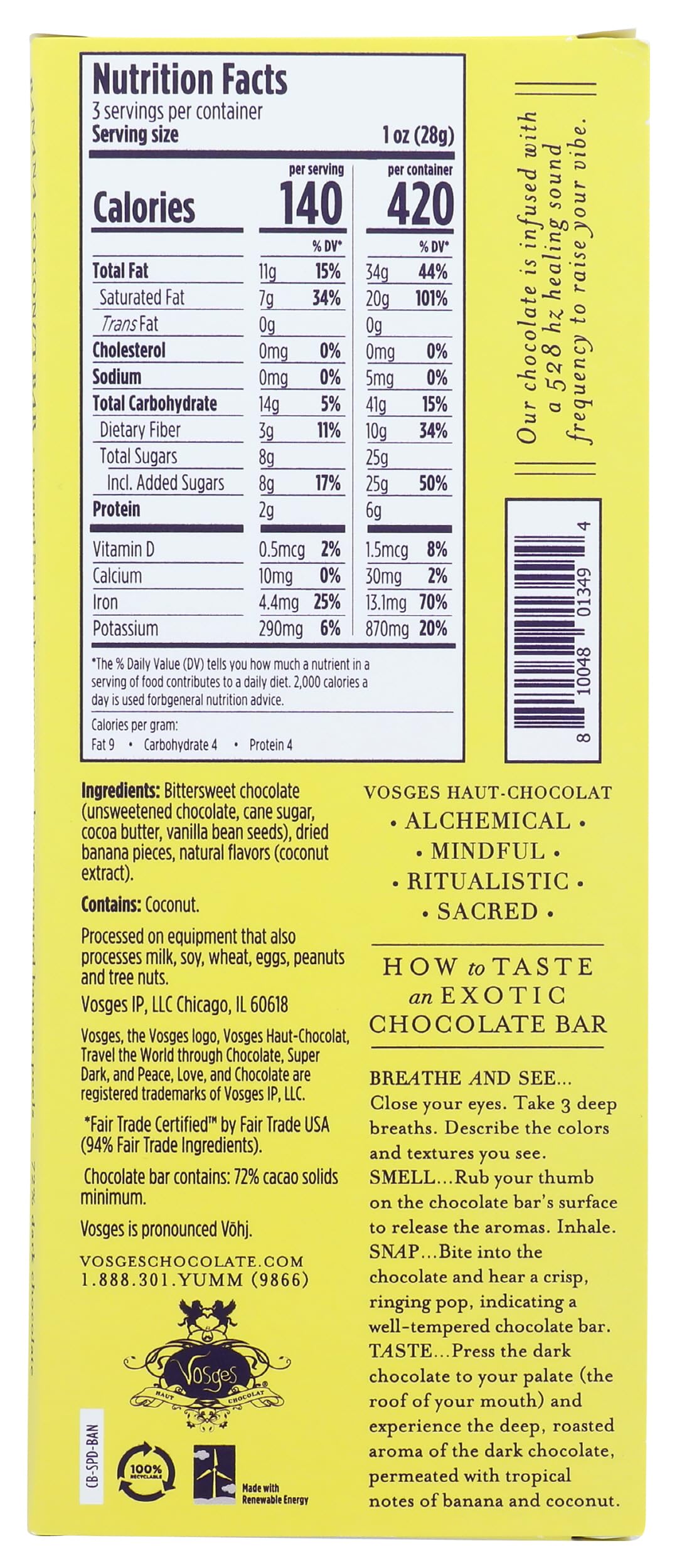 Vosges Haut-Chocolat Super Dark Coconut Ash and Banana, 3oz Bar