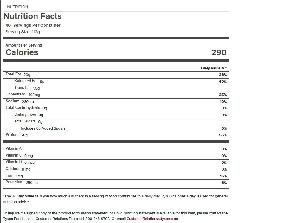 Storage Method Frozen Frozen Cook Method Bake Convection Grill Bake Convection Grill Serving suggestions Add some classic American flavor to your menu with Ball Park Flame Grilled Beef Burgers. Serve on a gourmet bun topped with melted American cheese, thick crispy bacon, lettuce and red onion slices for an irresistible burger experience. Serving suggestions Add some classic American flavor to your menu with Ball Park Flame Grilled Beef Burgers. Serve on a gourmet bun topped with melted American cheese, thick crispy bacon, lettuce and red onion slices for an irresistible burger experience. Storage Preparation Bake: PREPARATION: Appliances vary, adjust accordingly. Heating times are approximate. INDIVIDUAL BURGER PREPARATION: Conventional Oven Heat frozen product at 350F for 15-18 minutes and thawed product for 13-16 minutes. Convection: PREPARATION: Appliances vary, adjust accordingly. Heating times are approximate. INDIVIDUAL BURGER PREPARATION: Convection Oven Heat frozen product at 350F for 12-15 minutes and thawed product for 9-12 minutes. Grill: PREPARATION: Appliances vary, adjust accordingly. Heating times are approximate. INDIVIDUAL BURGER PREPARATION: Flat Grill / Griddle / Saut Pan Heat frozen product at 350F for 8-9 minutes per side and thawed product for 4-5 minutes per side. PREPARATION: Appliances vary, adjust accordingly. Heating times are approximate. INDIVIDUAL BURGER PREPARATION: Grill (Char Grill / Gas Grill) Heat frozen product at 350F for 5-6 minutes per side and thawed product for 3-4 minutes per side. Packaging information MASTER CASE Packaging information MASTER CASE PALLET More about this item There are few things more American than a good flame grilled burger. Ball Park Fully Cooked, Flame Grilled Beef Burgers answer the call with their authentic burger appearance, texture, and juiciness. Made with 100% beef, these burgers come conveniently precooked for speed to plate on multiple cooking platforms. They also feature a light seasoning that gives you the flexibility to add your own signature seasoning and toppings. Offer your customers an experience theyll appreciate from the first classic, juicy bite. Put Ball Park Beef Burgers on your menu. 4 oz serving appeals to patrons seeking a larger burger. Lightly seasoned for ultimate versatility in menu applications and flavor possibilities. Fully cooked product saves your back-of-house staff time and labor, and curbs food safety concerns. Multiple preparation options provide operational flexibility for speed of service. Portioned servings eliminate waste, reduce clean up required and minimize yield loss Ingredients Ground beef (not more than 30% fat), seasoning (salt, brown sugar, sugar, natural flavors, spice), natural flavor. Ingredients Ground beef (not more than 30% fat), seasoning (salt, brown sugar, sugar, natural flavors, spice), natural flavor.