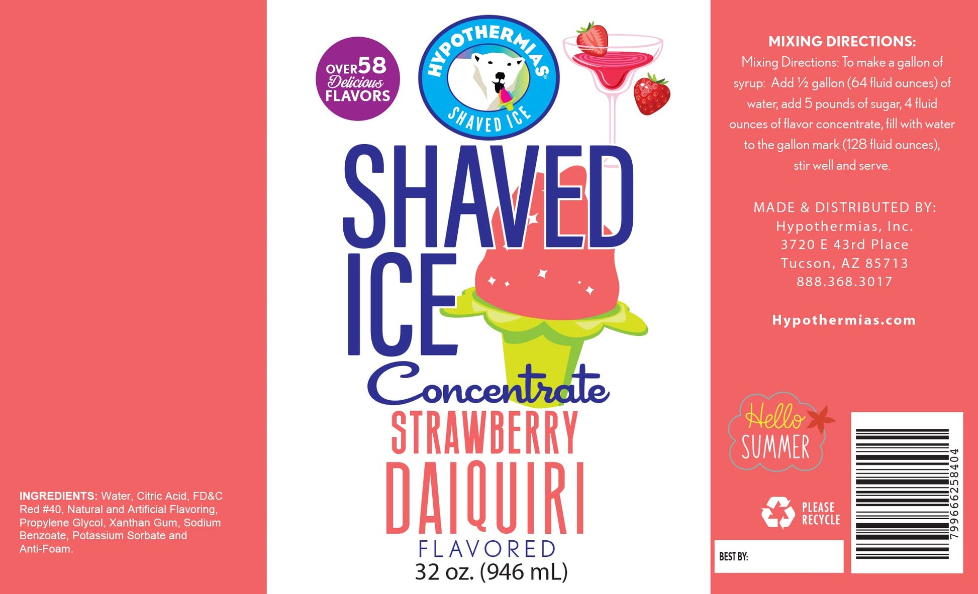 Introducing the Hypothermias Strawberry Daiquiri Shaved Ice Flavor Concentrate, an ideal choice for creating refreshing and delicious frozen . This concentrate is designed for easy mixing and is perfect for those looking to craft authentic shaved ice or sno cone flavors at home or in a commercial setting.