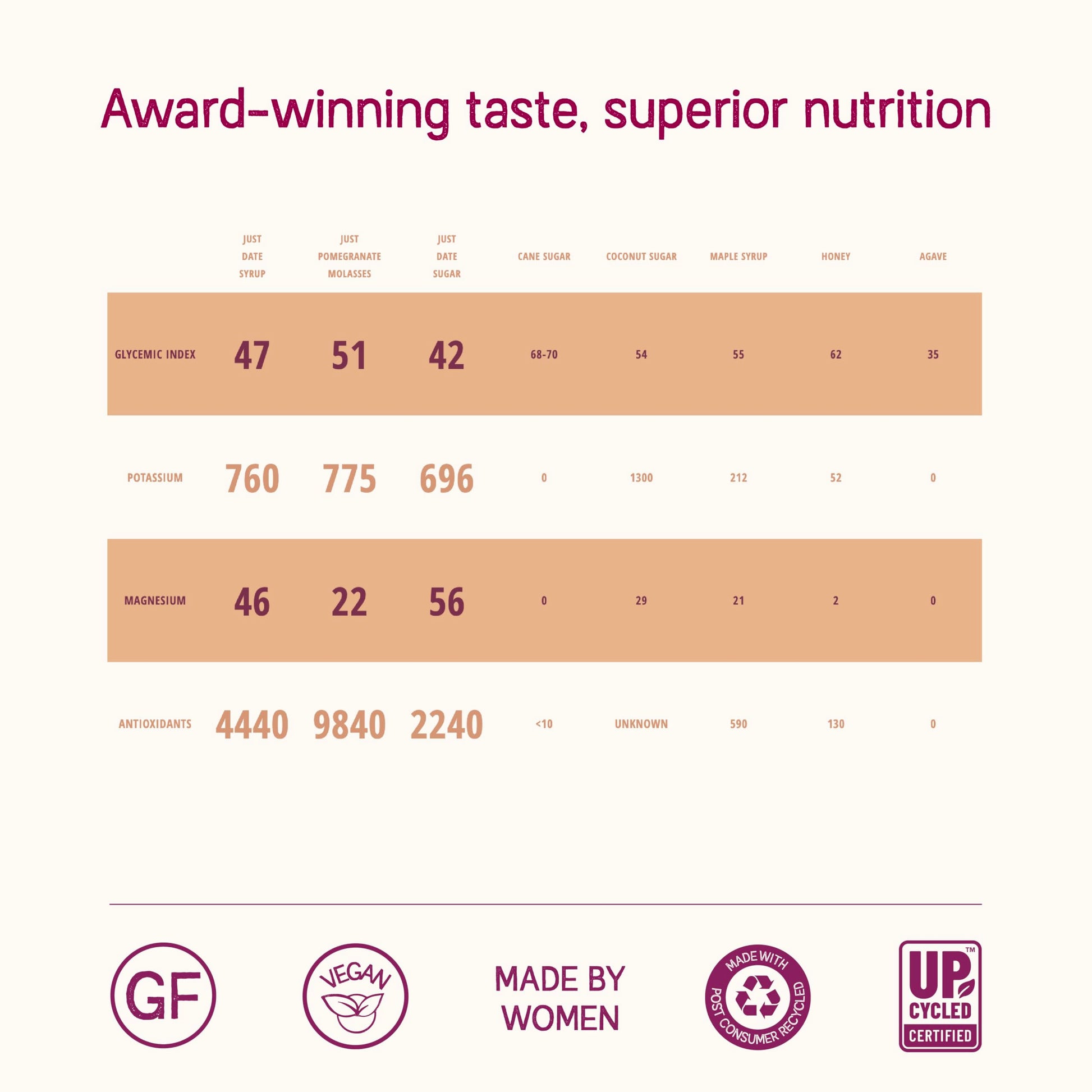Just Date: Organic Pomegranate Syrup / 100% Natural / Organic Pomegranate Molasses / Healthy Alternative for Sugar, Honey or Maple / Low Glycemic Index & Packed with Nutrition / 8.8 oz Squeeze Bottle