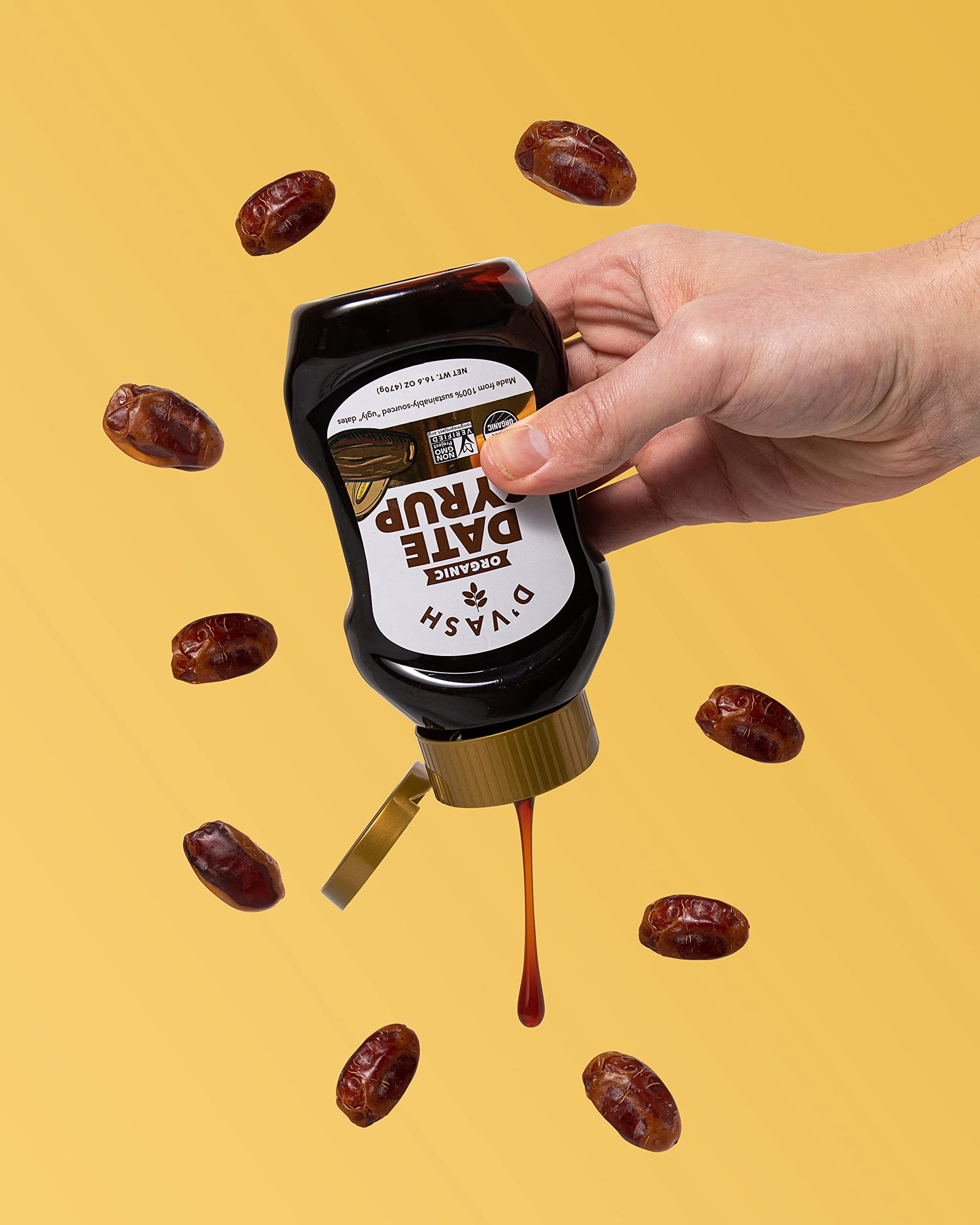 Organic Date Syrup 1 ingredient 100% Dates | DVash Organics | 16.6 oz Squeeze Bottle | California Dates, Non-GMO, Vegan, No Add