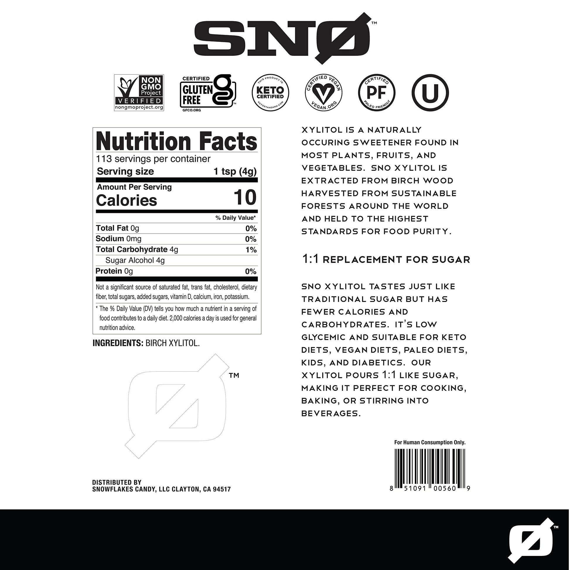 SNO Pure Birch Xylitol Sweetener - 1lb Resealable Bag | Low Calorie, Non-GMO, Gluten-Free, Vegan, Kosher | Paleo, Diabetic, & Ke