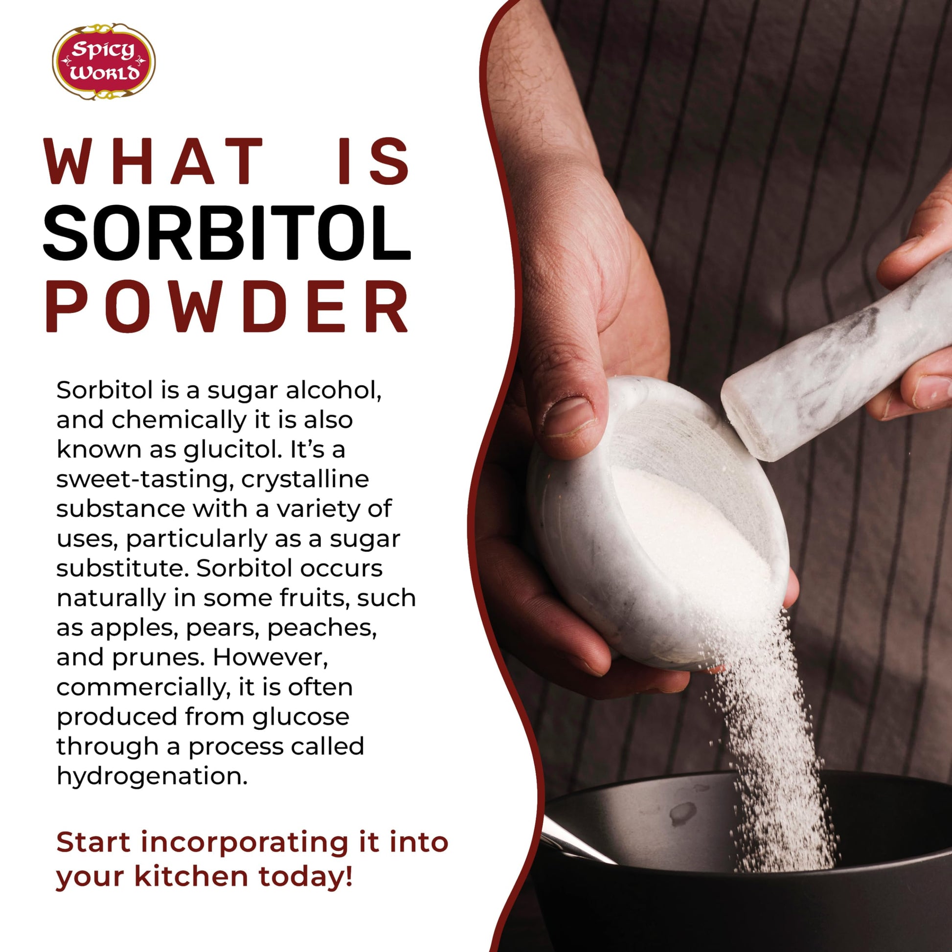 Spicy World Pure Sorbitol Powder 12oz Bag (340g) - Food Grade, Low Calorie Sweetener, Sugar Substitute, Thickening Agent - Packaged in USA