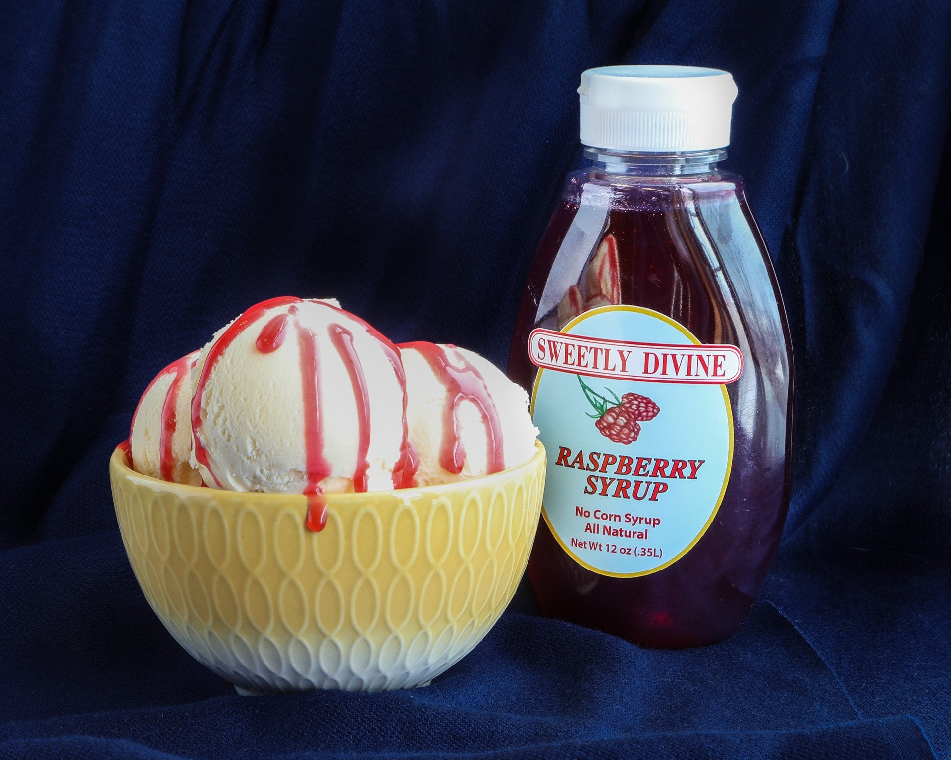 - Q: What makes Sweetly Divine Raspberry Syrup a healthier option? A: Sweetly Divine Raspberry Syrup is a healthier option because it contains no high fructose corn syrup or artificial sweeteners, and is made with only three natural ingredients.