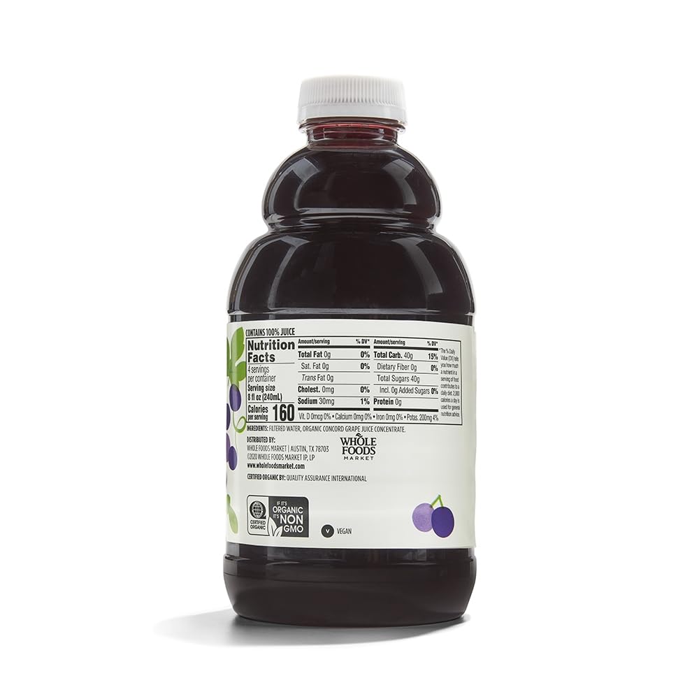 Q: Is the 365 Everyday Value Organic Concord Grape Juice made from real grapes?A: Yes, this juice is made from 100% organic Concord grapes, ensuring you get the full flavor and benefits of real fruit in every sip.