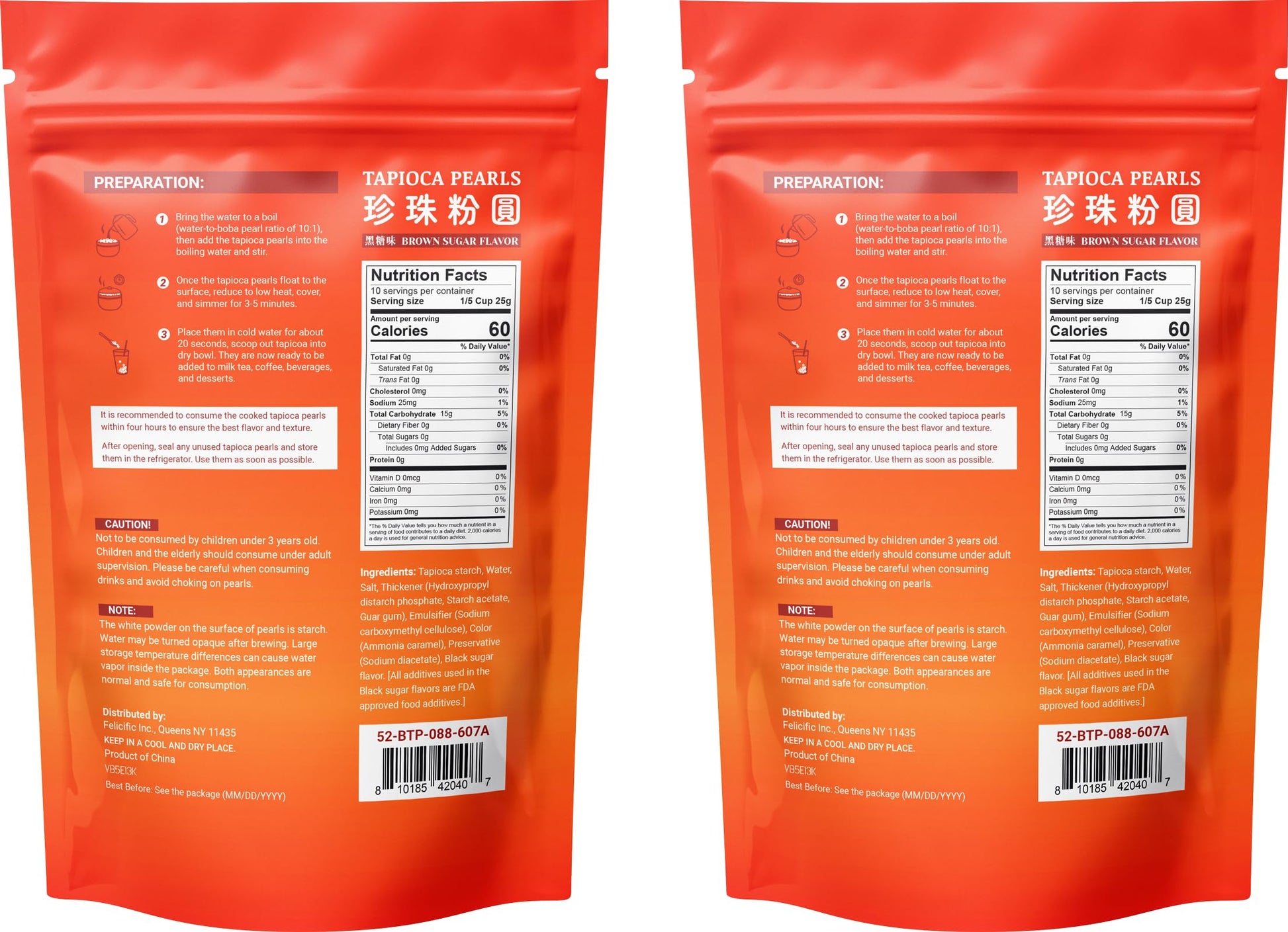Flavor: 52Usa Classic Black Boba Tapioca Pearl, Black Sugar Flavor. Prepared Tapioca Pearl Is Delicious Cold Or Hot, Pair With Your Favorite Milk Tea, Coffee, Dessert Or Smoothies And More | Texture: Soft And Chewy Pearls That Provide The Perfect Pearl Experience, Especially In Hot Beverages. Bubble Tea Pearl Are A Perfect Way To Enjoy A Coffee Quality Experience In Your Own Home | Preparation: Ready To Serve After Cooking For 5 Minutes. Fast And Easy To Prepare, No Extra Cooking Required. No Need To Continuously Stir During Cooking. Enjoy A Tasty Snacking Without Much Effort | Occasion: 52Usa Black Tapioca Pearl Is Very Popular. Perfect For Home, Club, Birthday Parties, Events, Office, Christmas Or Any Occasion | Net Weight: 8.8 Oz (250G) With 2 Pack. Each 8.8 Ounces Of Tapioca Pearls Is Enough To Make Five Drinks. Zero Loss During Cooking, Storage, Or Transport
