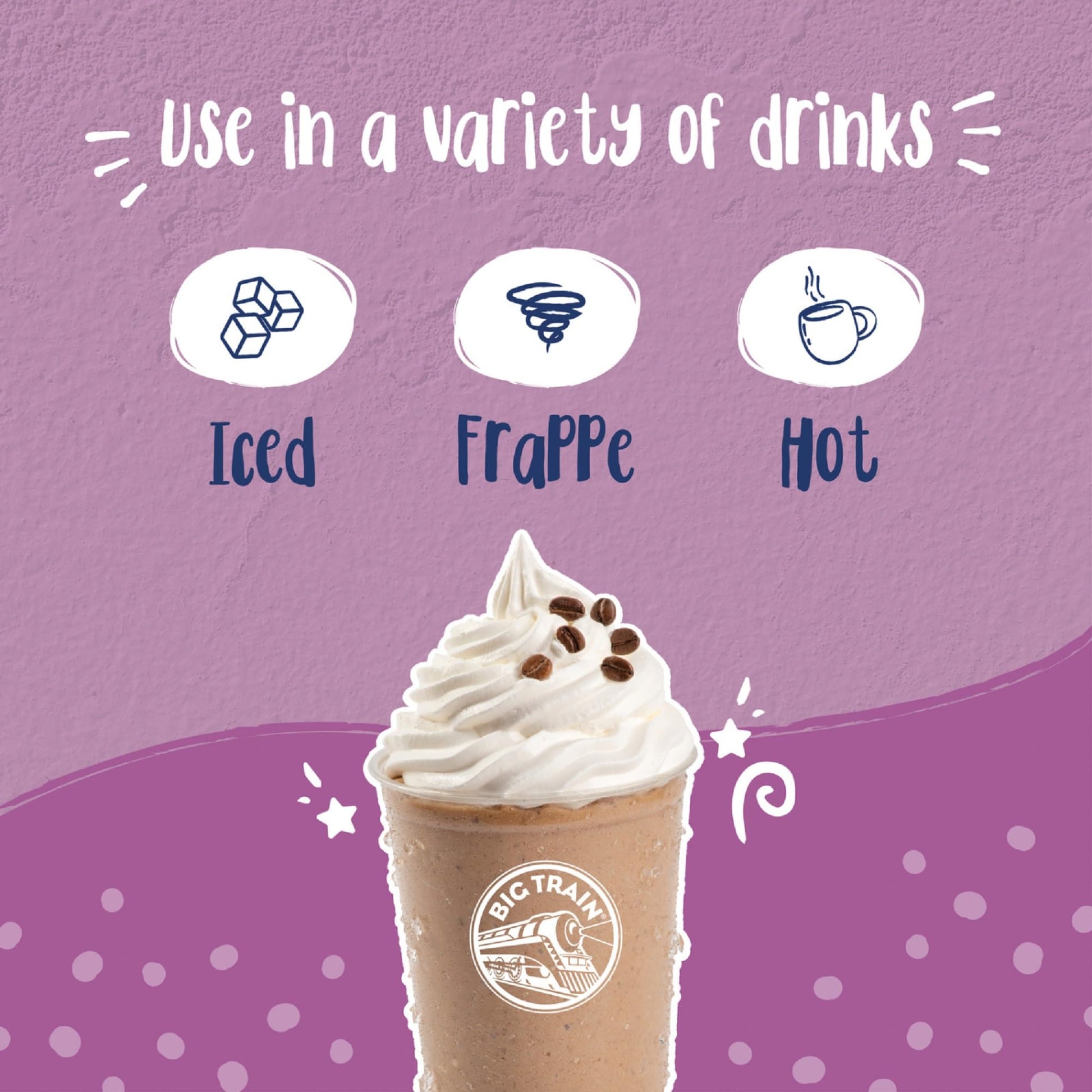 Just like our original Big Train Mocha Blended Ice Coffee Frappe Mix, this rich-tasting, reduced sugar version delivers creamy, consistent texture. Hot or iced, this reduced sugar mocha mix is sure to please coffee lovers in search of something a little different. For a sweet twist, customize with add-ins like flavored sugar-free syrups. Our Reduced Sugar Mocha Blended Ice Coffee Mix is full of rich chocolate flavor. Serve, hot, iced or blend with ice for a delicious Big Train frappe.