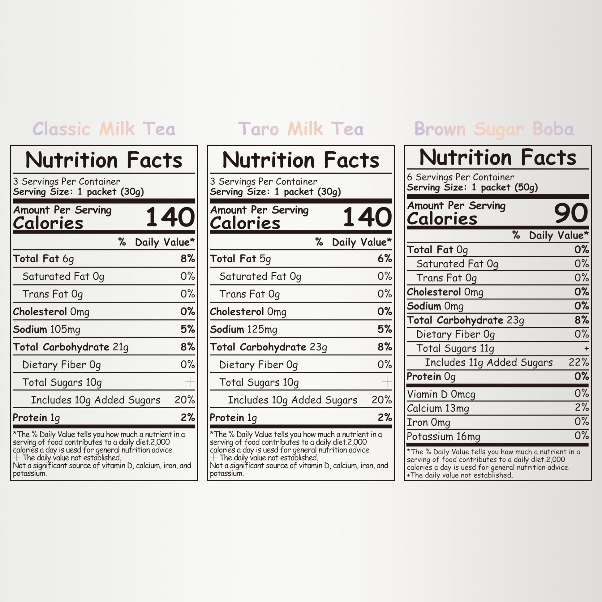 Q: What flavors are included in the Boba Moo Premium Boba Tea Kit Combo?A: The Boba Moo Premium Boba Tea Kit Combo includes two delicious flavors: Classic and Taro Milk Tea. You can mix and match these flavors to create your own personalized boba drinks.