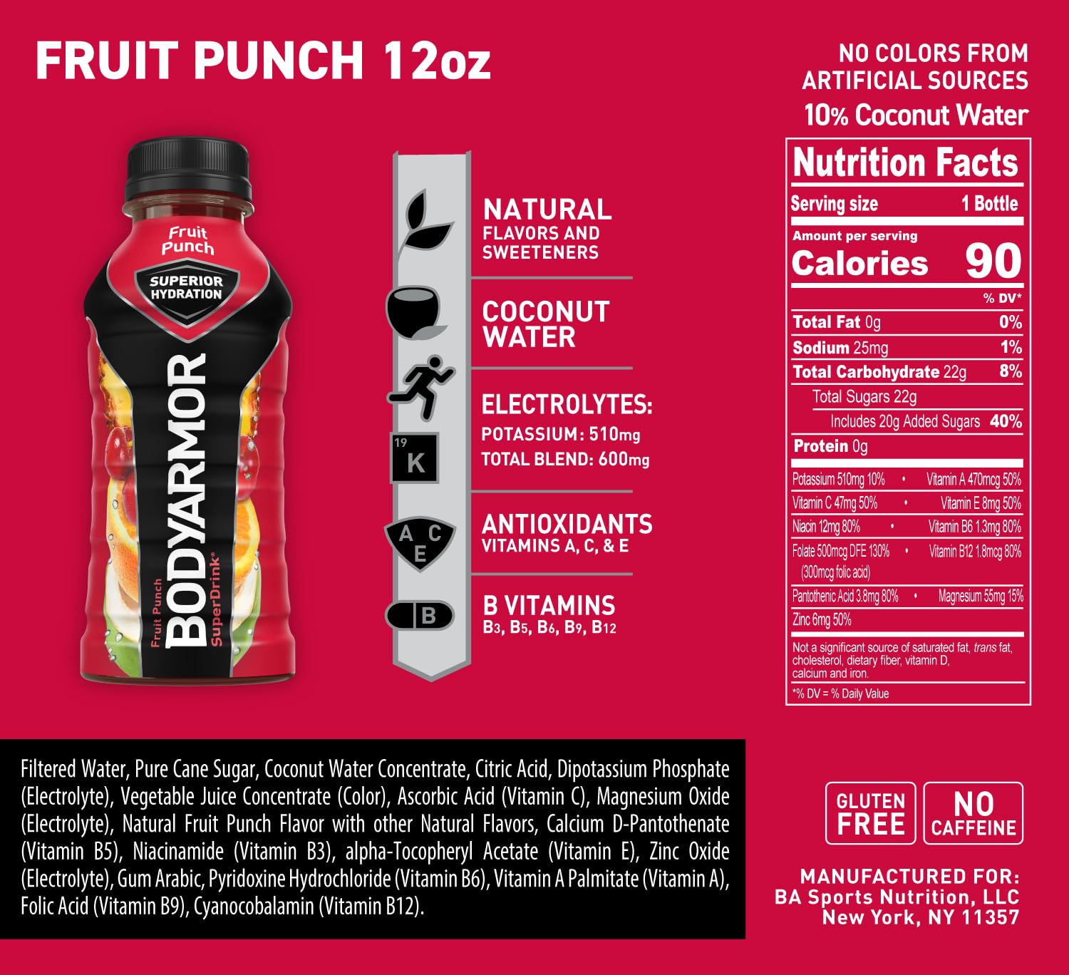 Bodyarmor Sports Drink Sports Beverage, Fruit Punch, Natural Flavors With Vitamins, Potassium-Packed Electrolytes, Perfect For Athletes, 12 Fl Oz (Pack Of 24)