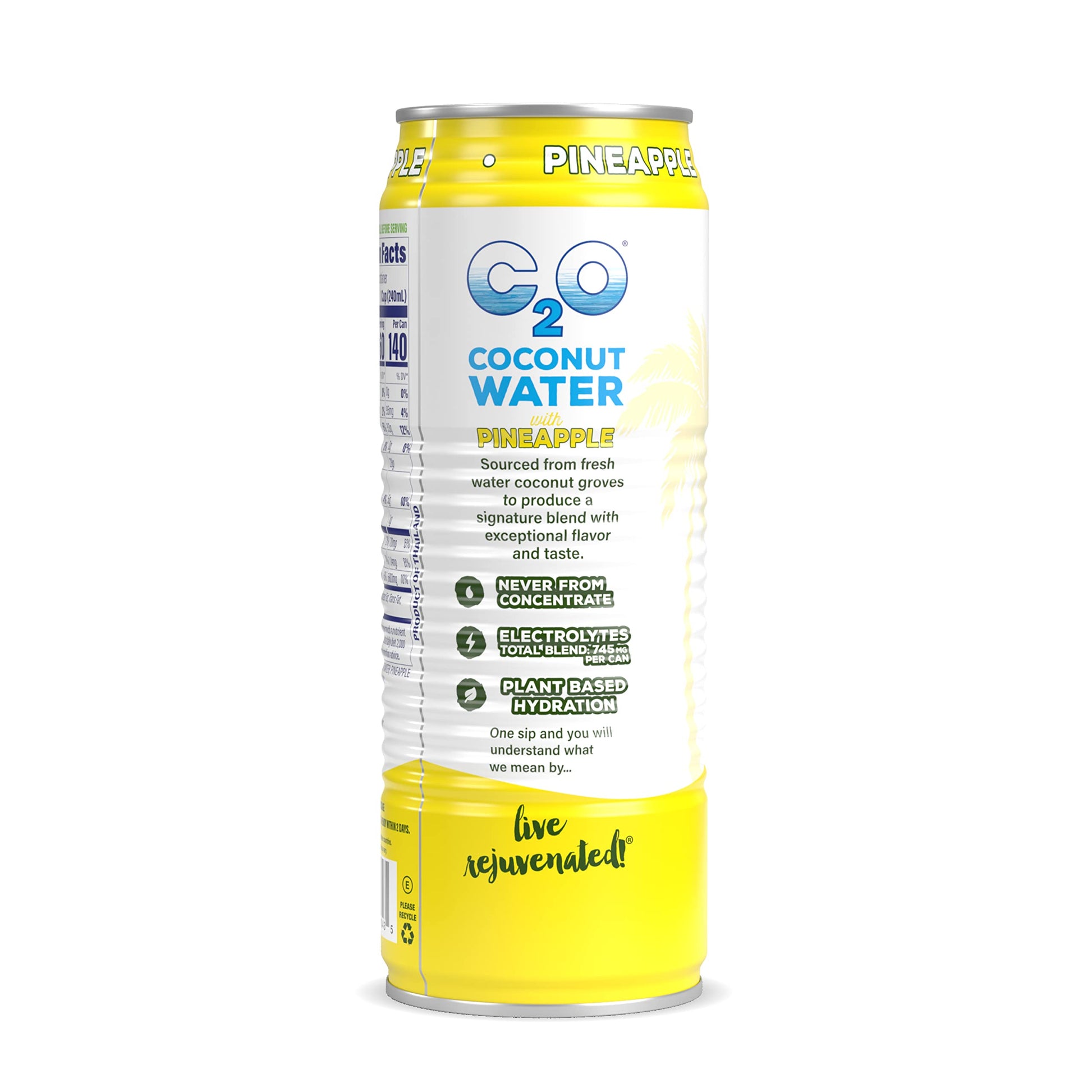 Taste the Difference - Sourced from freshwater coconut groves to produce a signature blend with exceptional flavor and taste. One sip and you will understand what we mean by "Live Rejuvenated!!!" Natural hydration with sweet pineapple flavor! | Hydrate Better - Never from concentrate, plant-based, non-GMO, and packed with essential electrolytes per can so you can conquer thirst naturally and restore balance to your daily routine. | Naturally Flavored - Made with real coconut water to deliver maximum refreshment. Our coconut water contains no artificial ingredients. Taste Paradise!!! | C2O for Any Occasion - With multiple flavors and sizes, we have a coconut water for everyone. Choose from Original, Organic, Pulp, Pineapple, Mango, and more! Perfect for smoothies, on-the-go, and post-workout recovery. | Why C2O? - Along with our Co-Op of farmers, we are dedicated to producing the finest coconuts in the world. We care about sustainability and are focused on developing thriving communities that support our farmers and their families.