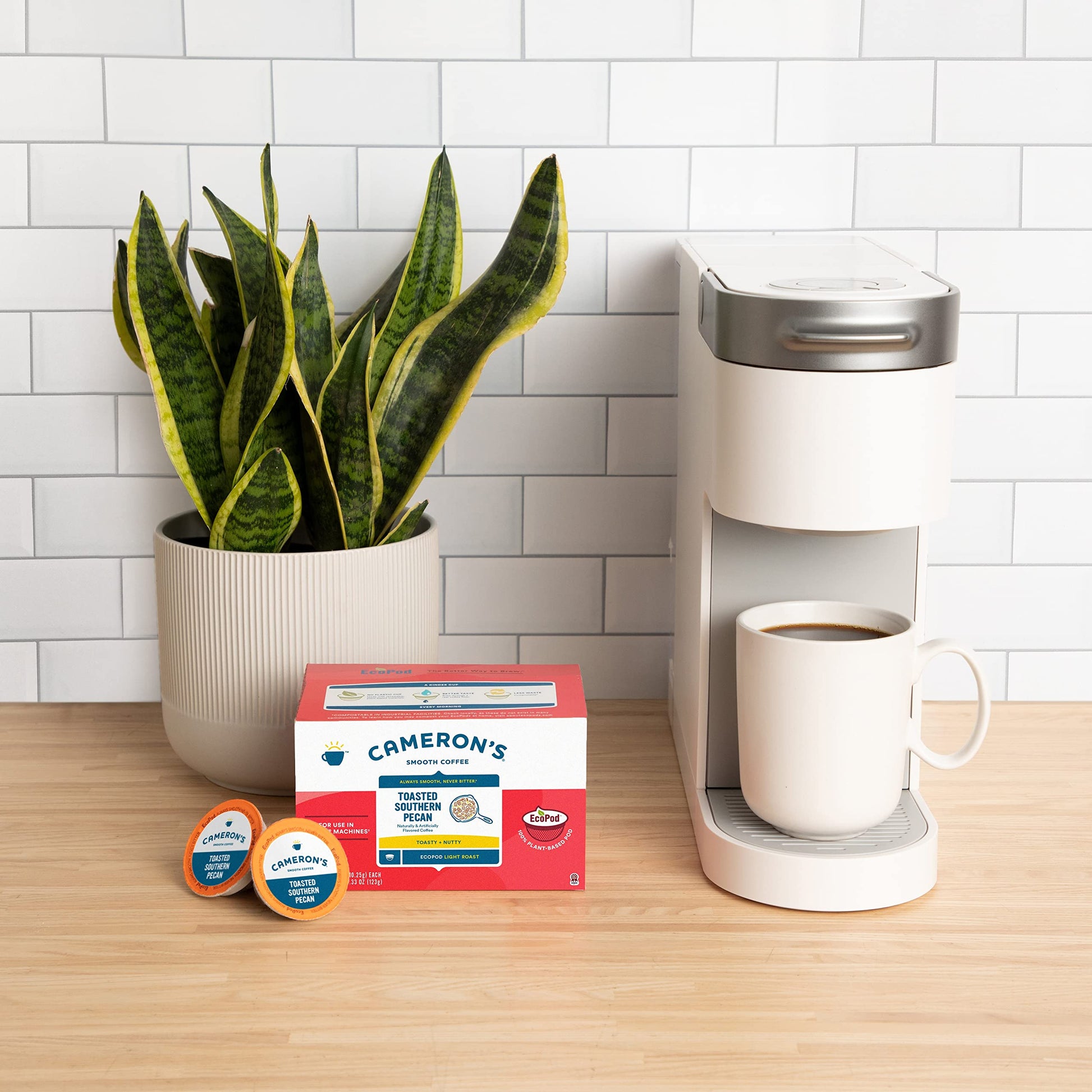 - Q: Are Cameron's Coffee Pods compatible with all single-serve coffee machines? A: Cameron's Coffee Dark Chocolate Mocha Pods are designed for use with most single-serve coffee machines, including popular brands. However, it's always best to check your machine's specifications to ensure compatibility with plant-based coffee pods.
