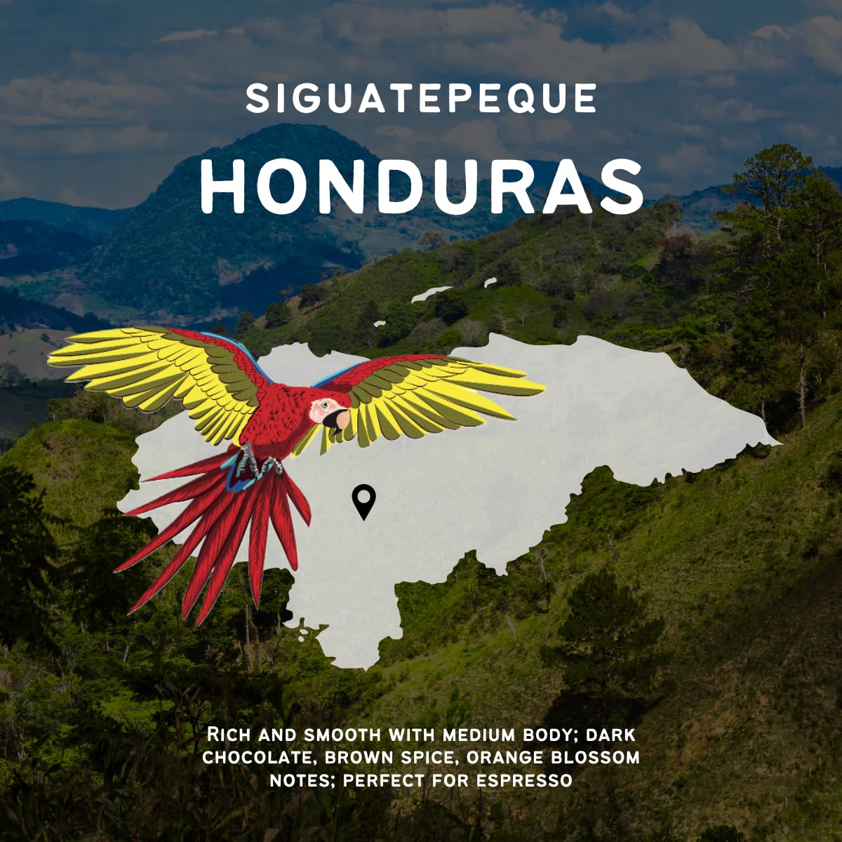 - Q: What flavor notes can I expect from this dark roast coffee? A: This dark roast coffee features rich and smooth flavors with a medium body. Expect delightful notes of dark chocolate, brown spice, and orange blossom, making it a unique and enjoyable experience for specialty coffee drinkers.