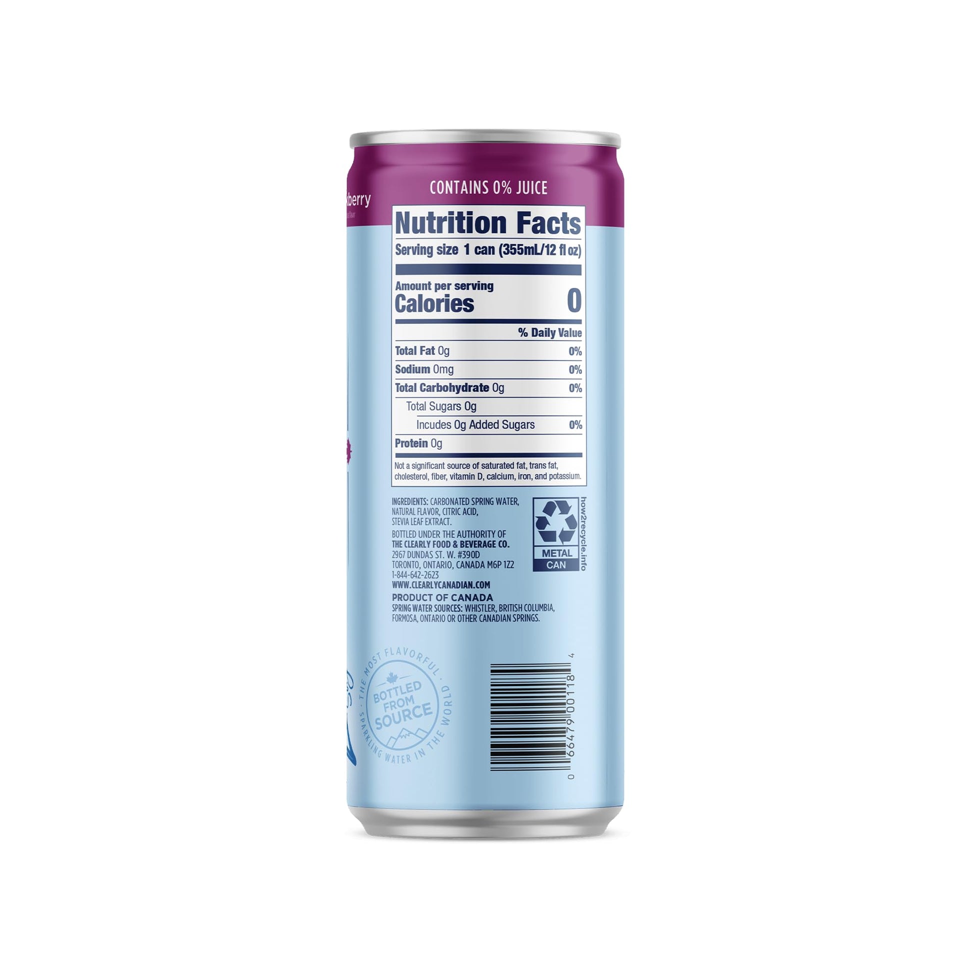 - Q: What makes Clearly Canadian Zero Sugar Forest Blackberry Sparkling Water different from regular soda? A: Clearly Canadian Zero Sugar Forest Blackberry Sparkling Water contains zero sugar and zero calories, making it a healthier alternative to traditional sodas, which are often high in sugar and calories. It is crafted with sparkling Canadian spring water and natural flavors, providing a bold taste without artificial ingredients.