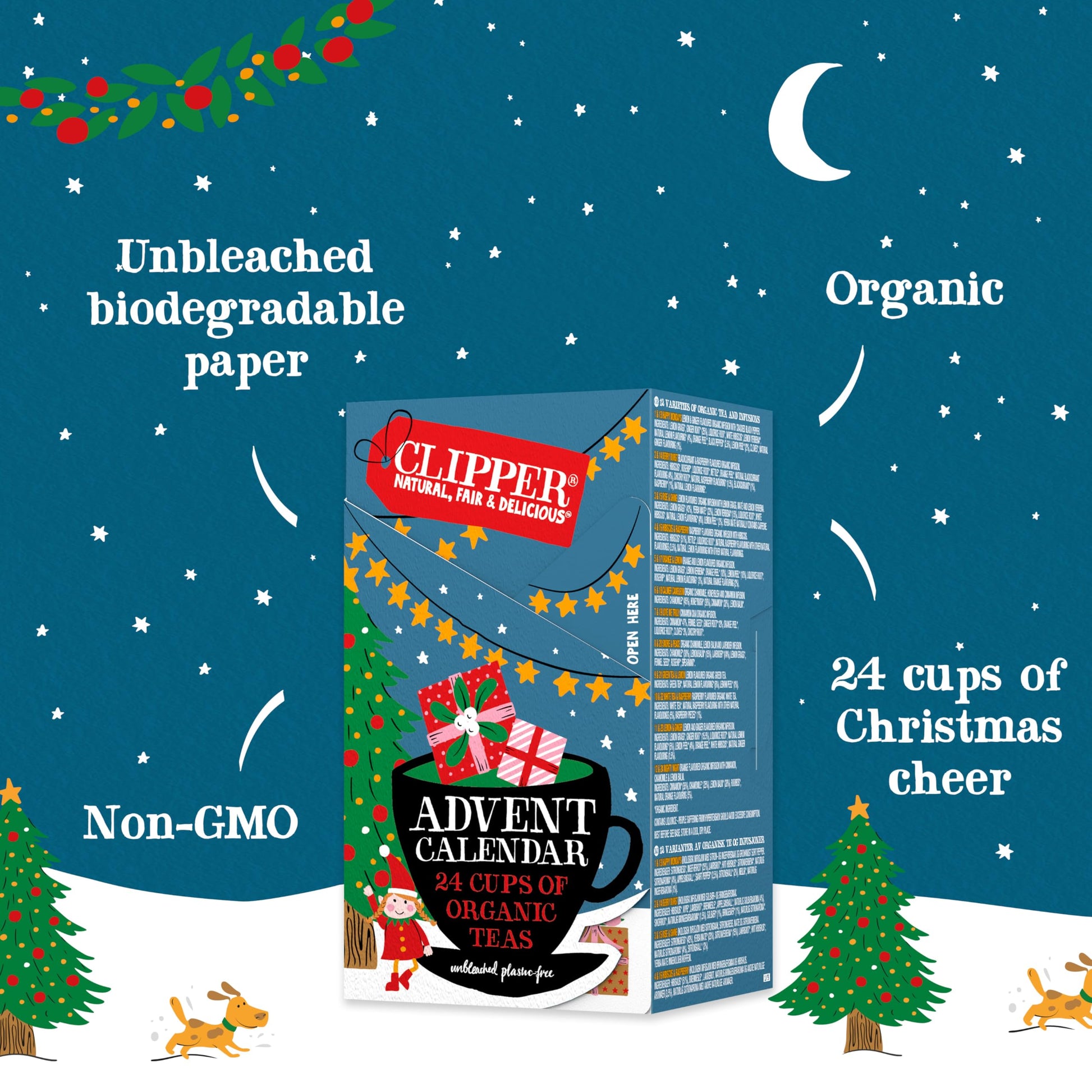 Sip Sip, hooray! It’s tea time! Since 1984, Clipper has been brewing up ethically sourced, fairtrade organic tea that delights the senses and soothes the soul. This holiday season, ditch the chocolate and kick off the holiday cheer with a unique and fun Christmas advent calendar of teas! It’s the perfect gift for yourself or the tea lovers in your life and a great way to taste a variety of our delicious, fairtrade organic teas. You deserve tea that is natural, fair, and delicious - which is why every Clipper teabag is unbleached, plastic-free, and bidegradeable. We’re proud to be the worlds largest organic fairtrade tea brand focused on providing superior teas from crop to cup. At Clipper, tea is love. Tea is life.