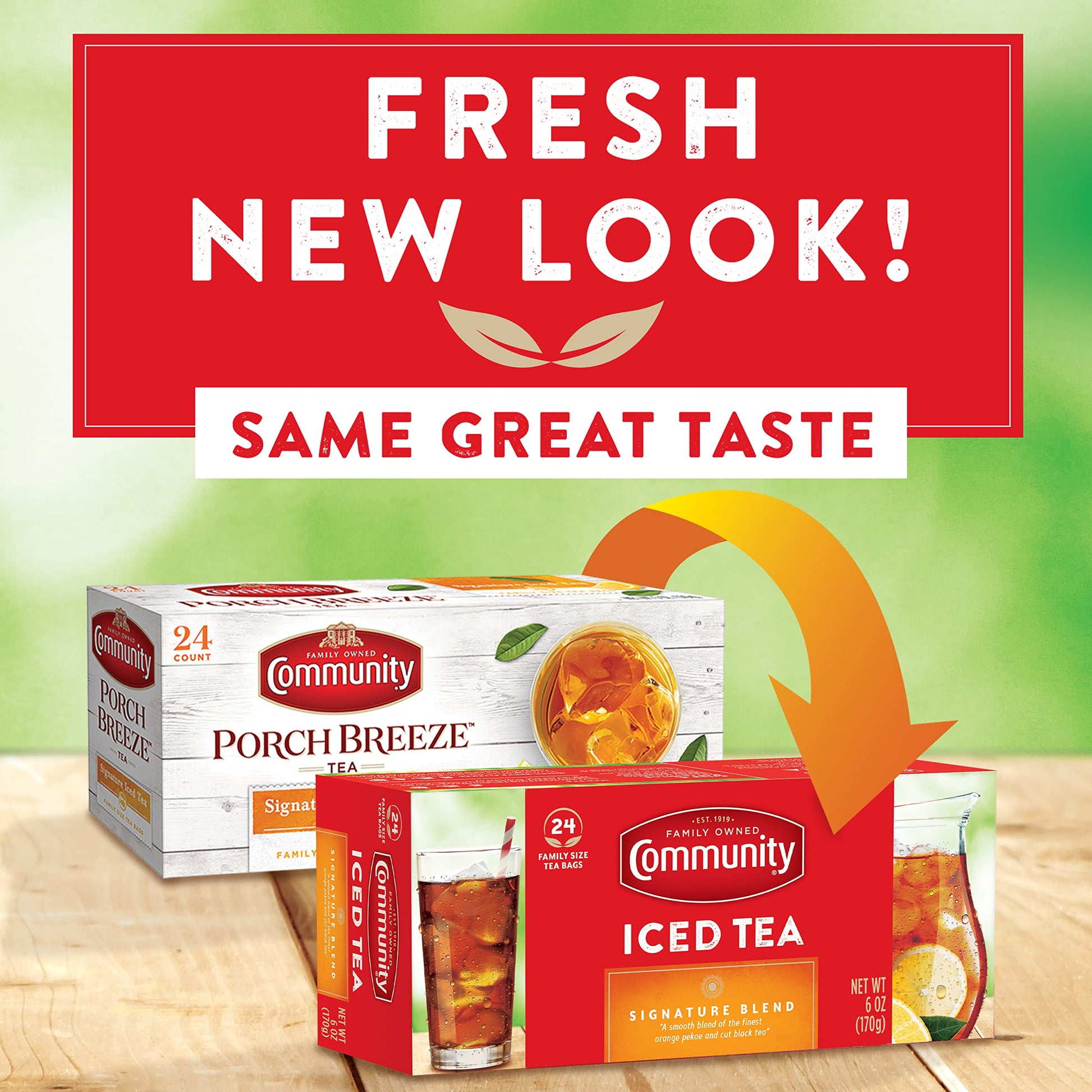 Crisp & Refreshing. Experience our signature iced tea, a smooth and captivating blend of the finest orange pekoe and pekoe cut black tea specially blended for iced tea. This product contains a 12 pack of 24 family sized tea bags, Enjoy 288 pitchers of tea. For great-tasting tea, follow the directions below. Serve with mint, lemon or sweeten to personalize. ICED TEA Use 1 family size tea bag for each quart of fresh water. Bring water to a boil, pour over tea bags, cover and steep for 3 to 5 minutes. Remove tea bags, chill and serve over ice. QUICK-SERVE PITCHER Use 2 tea bags for each quart of fresh water. Bring water to a boil, pour over tea bags, cover and steep for 3 to 5 minutes. Remove tea bags, add an equal amount of cold water and pour into ice-filled glasses. About Community Coffee Since Cap blended the first batch of Community coffee, we've seen plenty of change -- both inside and outside the company. we've evolved to better serve our customers, but we've also tried to stay true to our roots and the community that got us started. That's why for over 100 years we've maintained an unwavering dedication to making the best-tasting, highest-quality coffee we possibly can -- all while developing better methods of sourcing, superior roasting techniques and innovative ideas to keep our coffee at its peak of flavor and freshness. We simply love making coffee, and we find inspiration in every part of the process, from planting the beans to serving the perfect cup. Above all, we're inspired by the people we work with, the customers we serve and the connections we've built together.