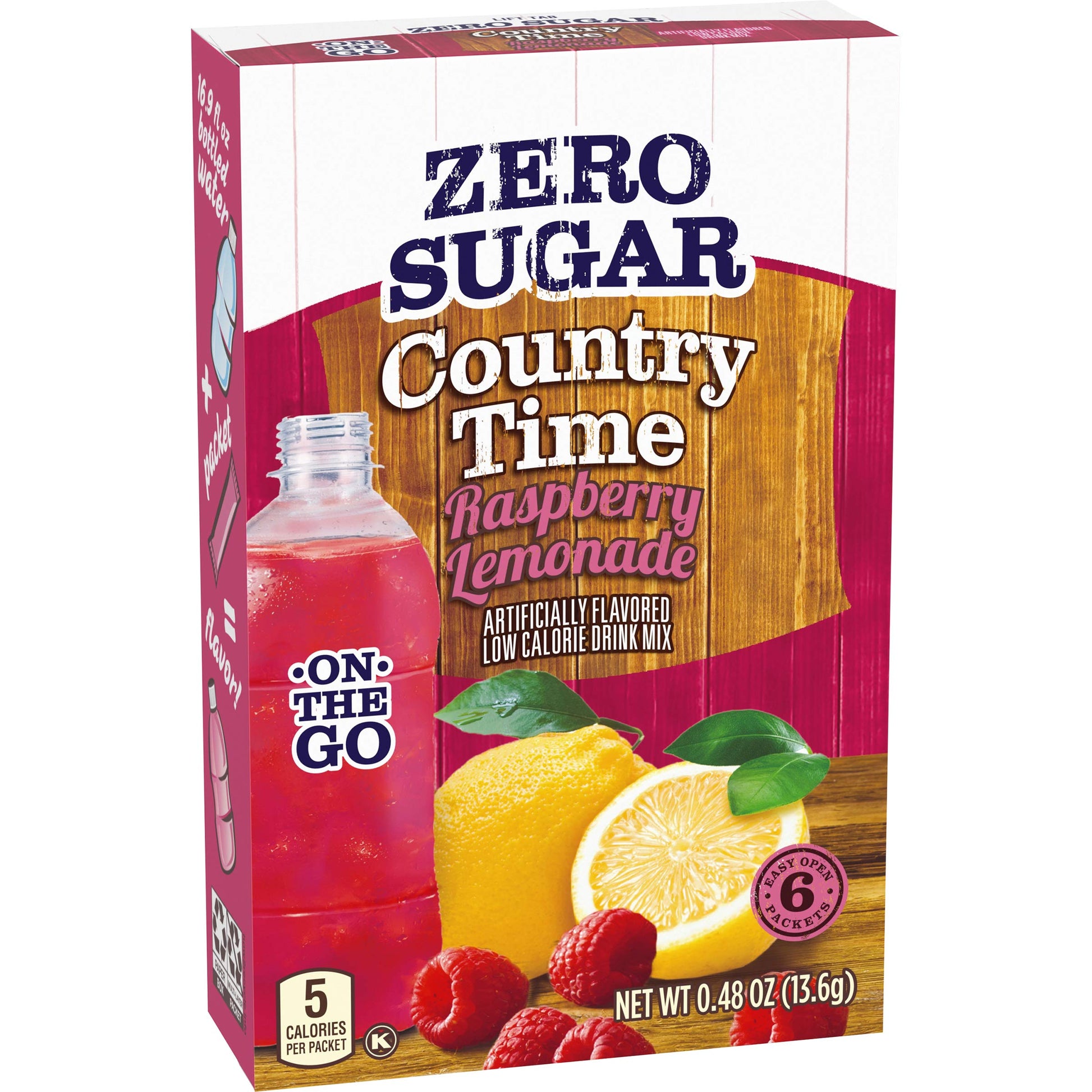 Country Time On-The-Go Zero Sugar Raspberry Lemonade Powdered Drink Mix helps keep your family cool on summer's hottest days. This powdered drink mix is ideal for quick mixing anytime, anywhere. This refreshing raspberry lemonade quenches your thirst, offering the perfect balance of tart and sweet with citrusy lemon flavor. The zero sugar powdered lemonade contains only 5 calories. The ultra-convenient berry flavored lemonade mix packets are perfect for storing in your gym bag, briefcase, car or desk drawer for easy mixing on the go. Add one sugar free drink mix packet to a bottle or tall glass of water, then shake or stir for fruity flavor. Twelve 0.48 ounce boxes each containing 6 raspberry lemonade packets.