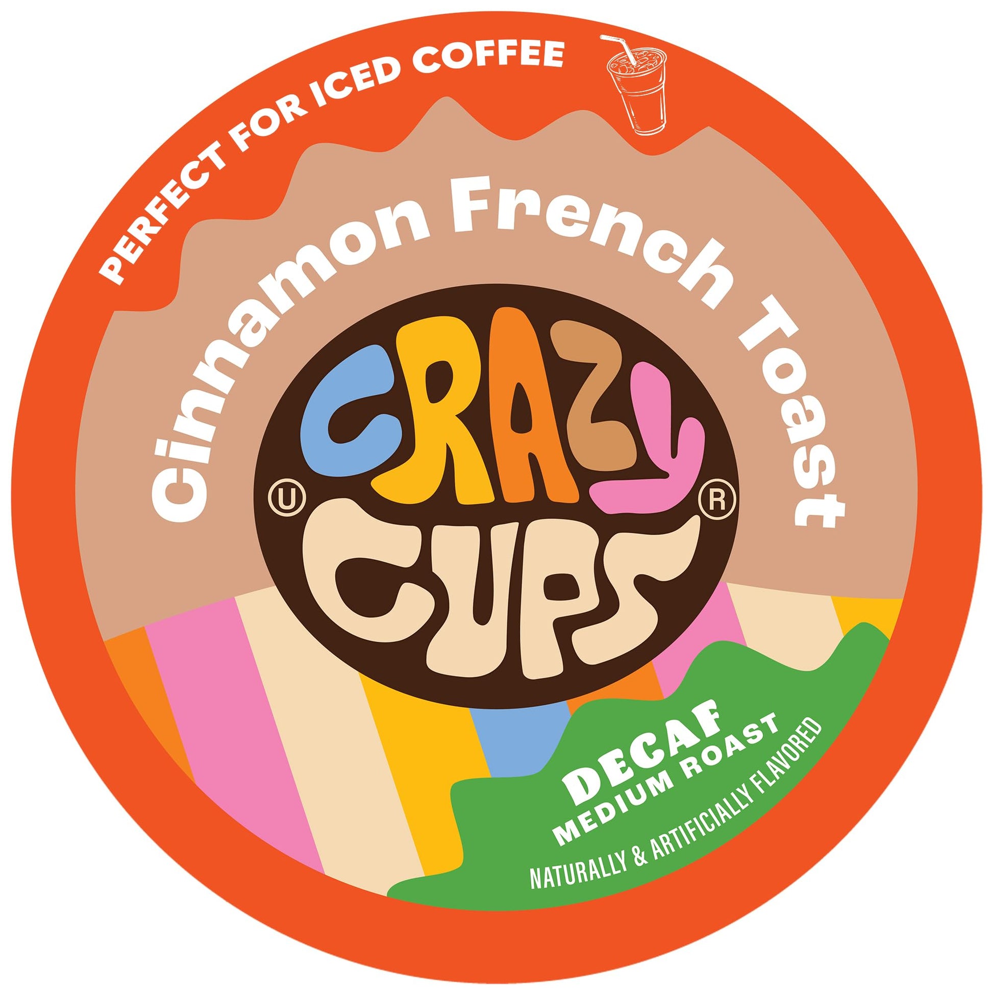 EXPERIENCE MORE FLAVOR WITH CRAZY CUPS: Enjoy the decadent taste of cinnamon french toast decaf coffee and a hint of maple syrup whenever you’re in the mood. Enjoy this rich medium roast flavored coffee every morning | MORE COFFEE - Our decaffeinated coffee pods have 30% more cinnamon french toast coffee in every capsule than average flavored decaf k cups. Savor the aroma of coffee flavored with classic french toast goodness. Enjoy our decaf flavored coffee hot or as an iced coffee | TOP QUALITY INGREDIENTS: Each of our flavored coffee pods is gluten-free and keto friendly. Our decaf coffee is vegan, kosher, and pareve. Enjoy cinamon french toast flavored sugar free coffee with out the jitters with our flavored decaf coffee k cups | ECO-FRIENDLY: Crazy Cups single serve coffee for Keurig Machines are packaged in recyclable capsules. Our premium coffee decaf blends are made with 100% Arabica Beans. Enjoy our coffee pods decaffeinated burst of flavor while doing right by mother nature | COFFEE PODS FOR KEURIG COFFEE MAKERS: Our kerigue coffee pods are compatible with any coffee machine that brews decaf k cups including the Keurig 2.0 brewer. Kcups is a registered trademark of Kurig. Not affiliated with Keurig & Green Mountain