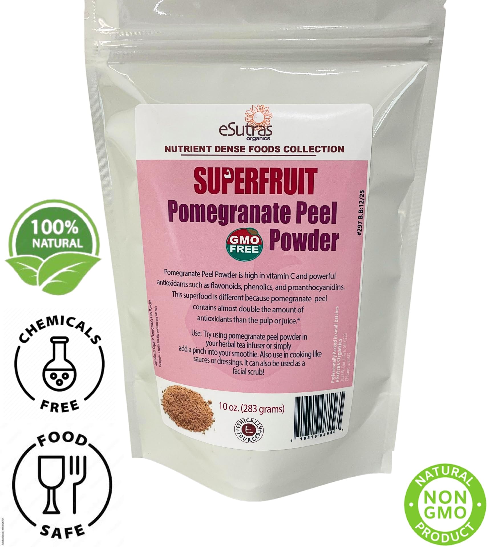 Q: Is the pomegranate peel powder organic and natural?A: Yes, eSutras Organics Pomegranate Peel Powder is made from all-natural, organic pomegranate, ensuring you get a pure and high-quality product.