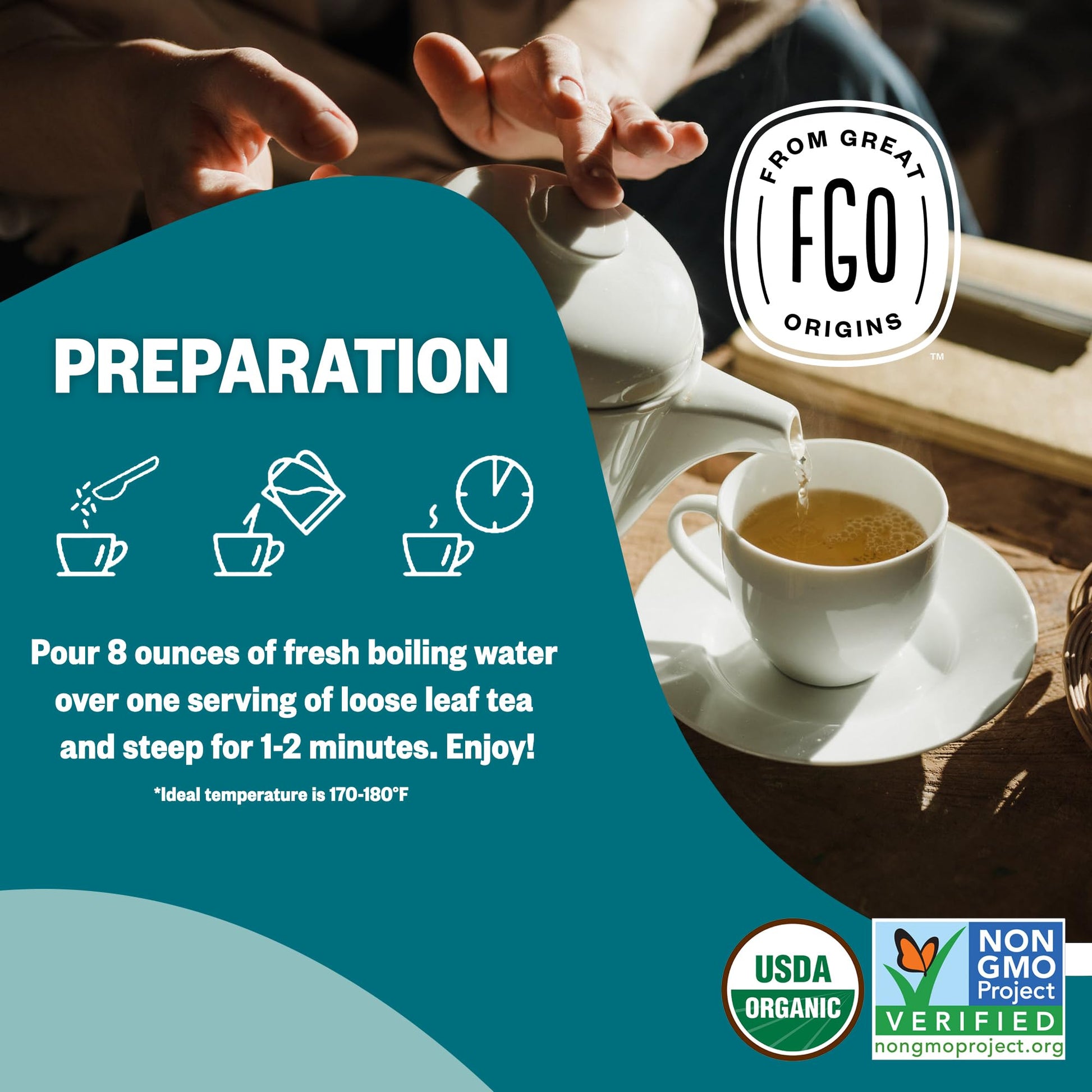 - Q: What is FGO Organic Sencha Loose Leaf Tea? A: FGO Organic Sencha Loose Leaf Tea is a premium, USDA-certified organic green tea imported from Japan, packaged in a resealable 4oz bag. It allows you to brew up to 50 cups of tea, providing a customizable tea experience without the waste of bags or strings.