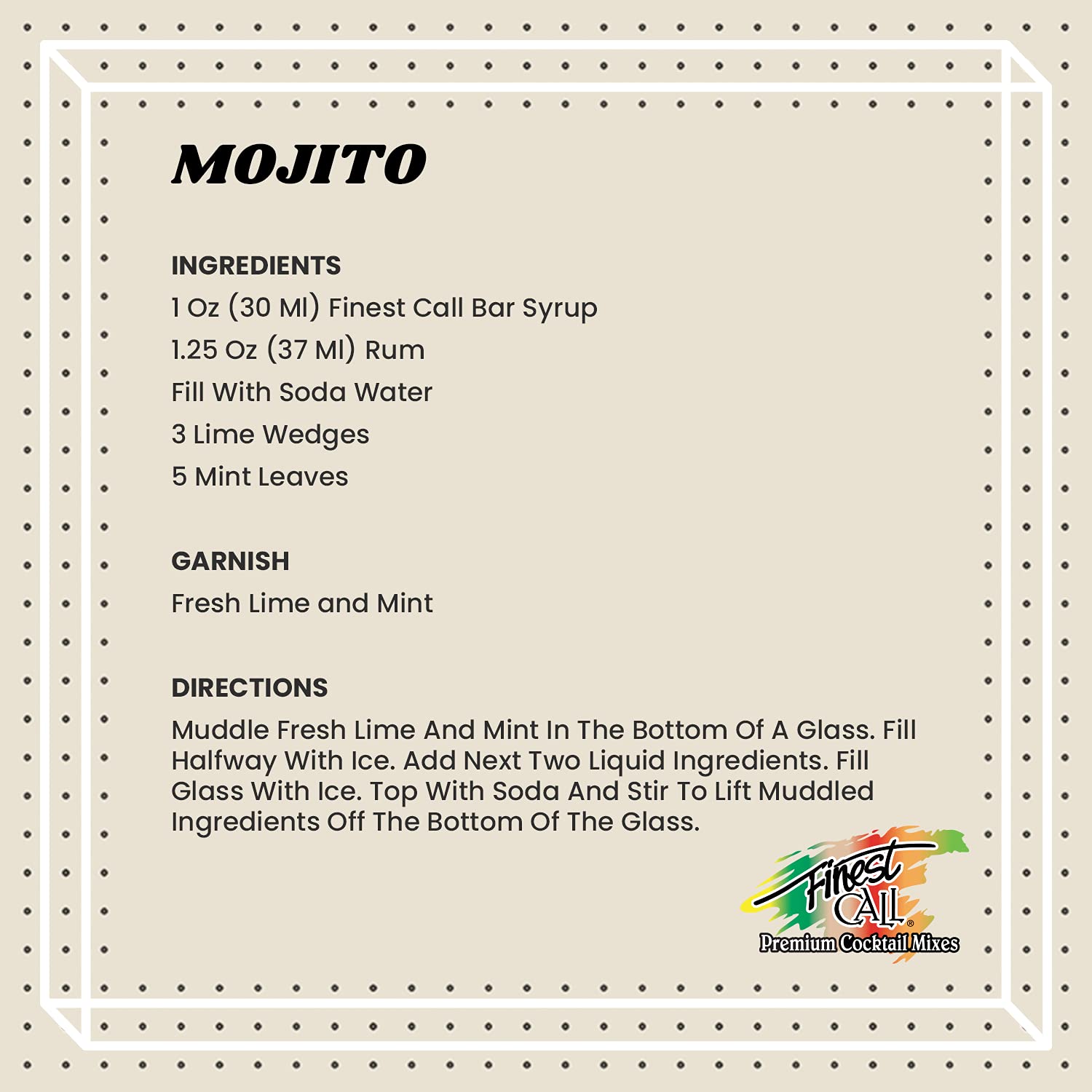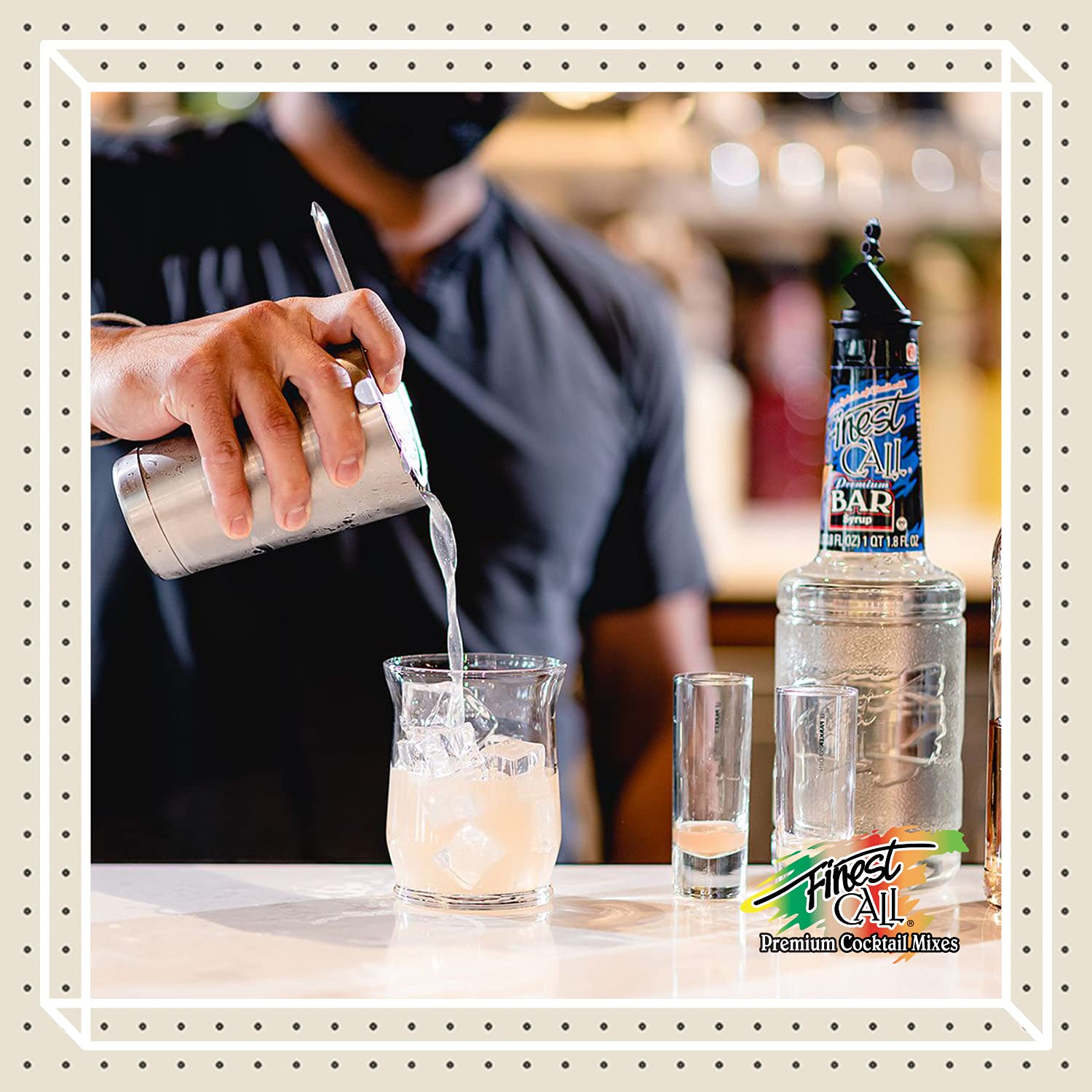 - Q: How do I use Finest Call Premium Bar/Sugar Syrup Mix in cocktails? A: To use the Finest Call Premium Bar/Sugar Syrup Mix, simply pour the desired amount into your cocktail shaker or glass. The patented dispensing closure allows for a perfect 1 oz. pour, ensuring consistent sweetness in every drink.