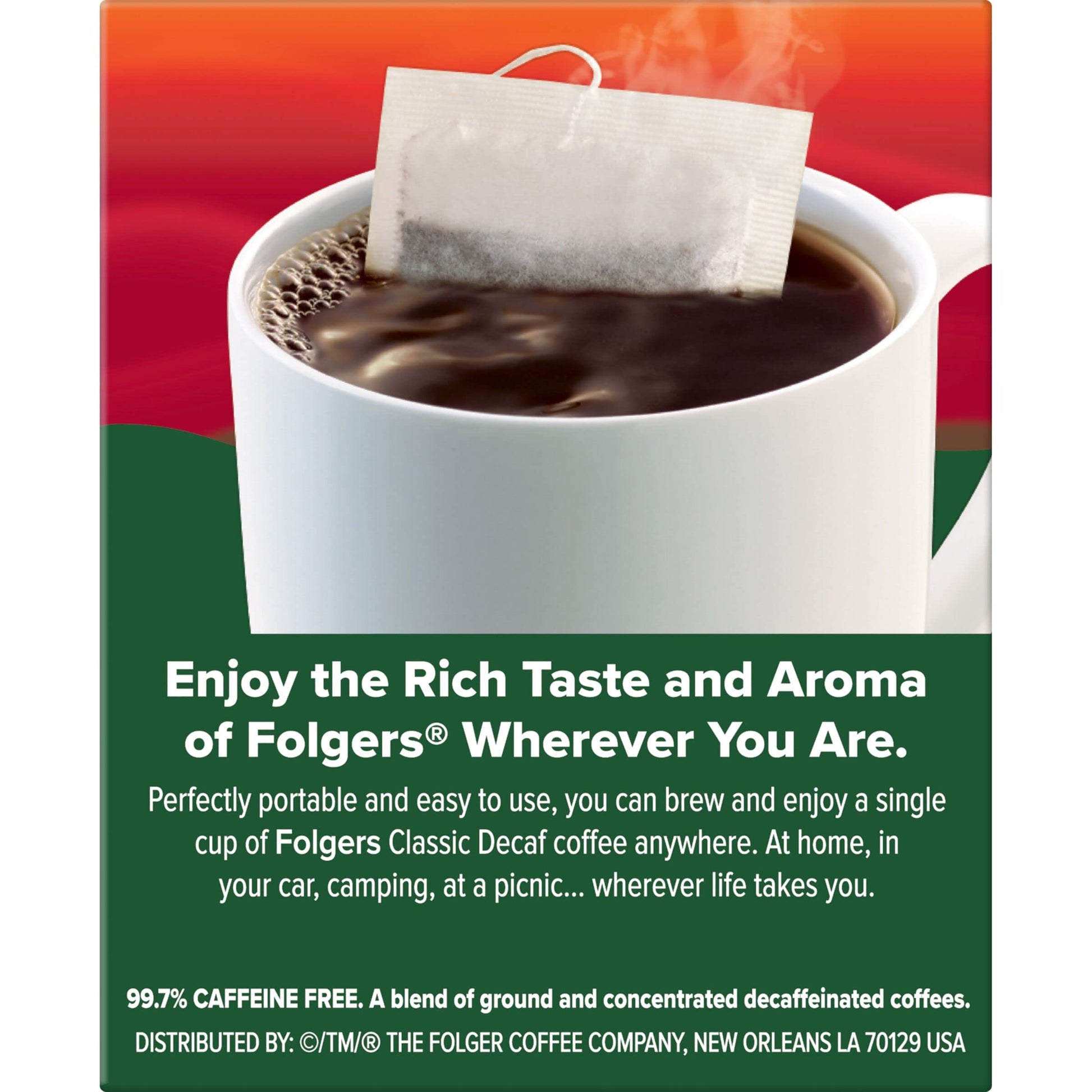 Q: Are Folgers Coffee Singles easy to use?A: Yes, Folgers Coffee Singles are individually wrapped and designed for easy brewing. Simply open a bag, pour it into hot water, and enjoy your fresh cup of decaffeinated coffee.