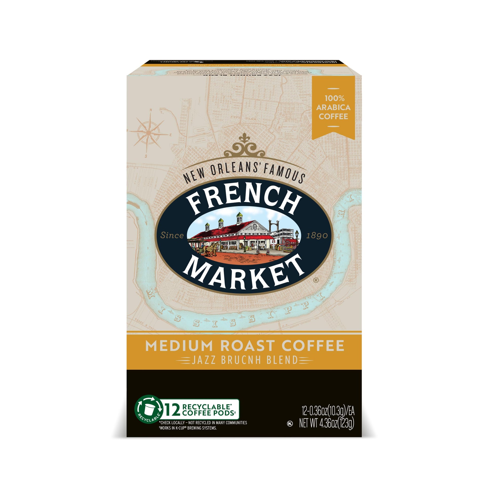 Q: What is the flavor profile of French Market Jazz Brunch Blend Medium Roast Coffee Pods?A: The French Market Jazz Brunch Blend features a bright and beautiful medium roast with undertones of citrus and honey, offering a rich and bold flavor that is characteristic of New Orleans coffee.