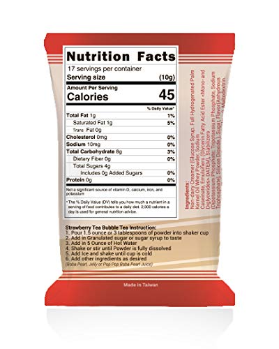 ? COMPLETE MILK TEA POWDER MIX - Make authentic bubble tea with our 3-in-1 milk tea powder. Each variety tea is a perfect blend of your favorite flavor, cream, and sugar to satisfy your cravings. | ? THE BEST FLAVORS - Not sure what choice of flavored tea you want to make? Our powdered tea beverages are available in honeydew, strawberry, mango, taro, milk tea, lychee, Thai tea, or coconut. | ? SERVE IT HOW YOU LIKE IT - Our milk tea mix can be used to make hot and iced tea drinks or blended frappes and smoothies. Just add 5 ounces of water or milk for every 3 teaspoons of powder mixed. | ? GREAT FOR ALL OCASSIONS: Birthdays, Mothers Day, Fathers Day, Office, Military and others. boba to jelly, you can let guests add the ingredients they desire. | ? A SCRUMPTIOUS GIFT - Know a friend or someone in the family with a boba tea craze? They'll appreciate a pack of our boba milk tea mix so they can conveniently make their own drinks at home.