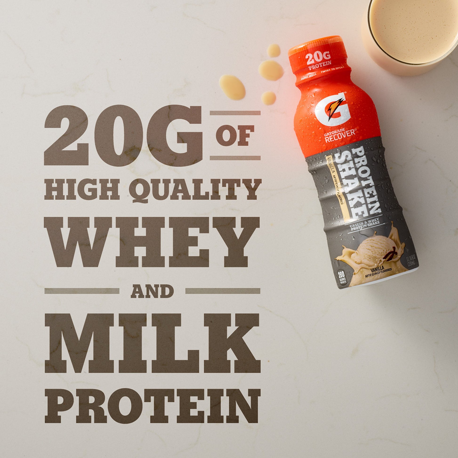 - Q: What are the key benefits of Gatorade Recover Protein Shake? A: Gatorade Recover Protein Shake provides 20g of high-quality whey and milk protein, which helps repair and rebuild muscles after strenuous workouts. It also supplies essential amino acids necessary for muscle recovery, making it an ideal choice for athletes.
