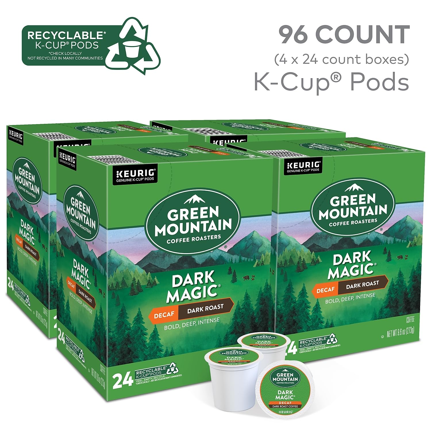 Q: Are these K-Cup pods compatible with all Keurig machines?A: Yes, Green Mountain Coffee Dark Magic Decaf K-Cup pods are compatible with all Keurig single-serve coffee makers. Just insert the pod into your machine, and you can brew a delicious cup of coffee in minutes.