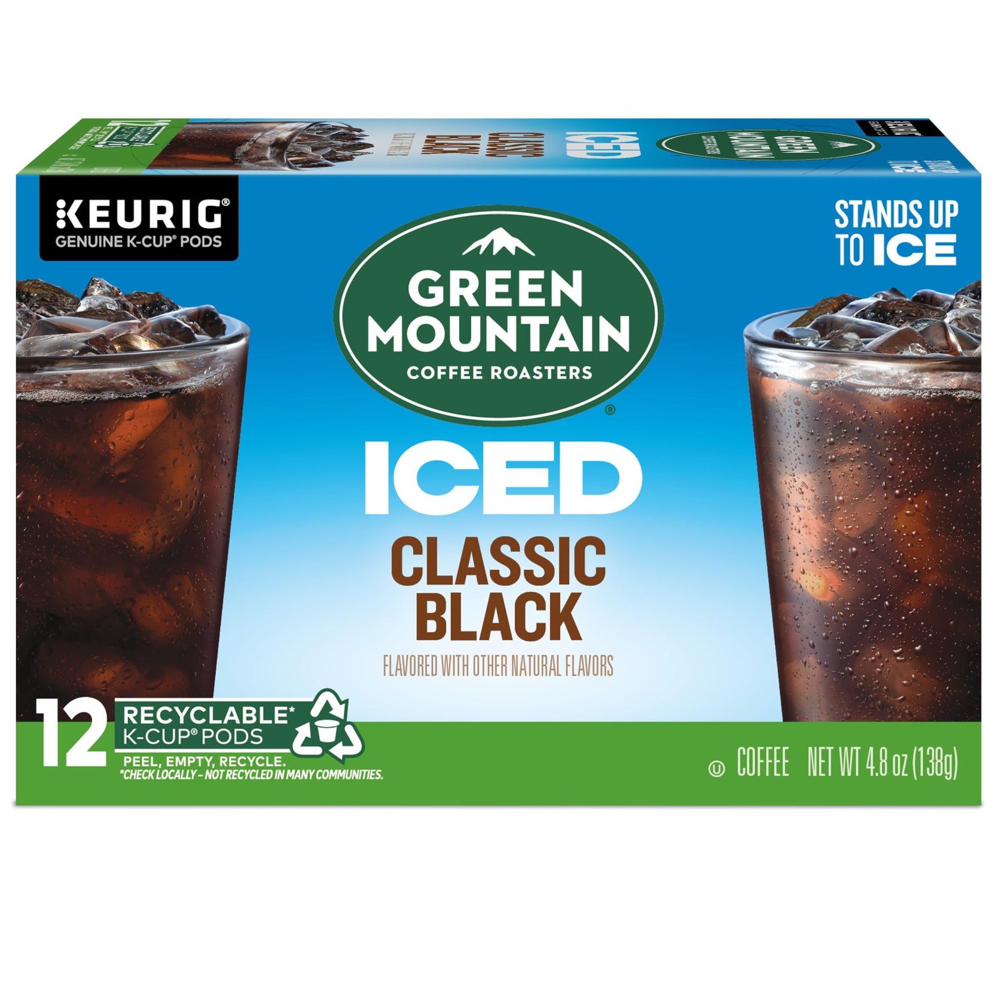 The mountains are a special place. It’s where Green Mountain Coffee Roasters® was born. With a vibrant taste and subtly sweet notes of cocoa flavor, Green Mountain Coffee Roasters® ICED Classic Black K-Cup® pods are specifically designed to hold up to ice. We start with a specially crafted premium medium roast blend, then add an extra boost of 100% Arabica coffee captured at its peak flavor. All so you can enjoy a café-quality, exceptionally rich, wonderfully balanced, and refreshingly full-flavored iced coffee that’s anything but ordinary. These K-Cup® pods are compatible with all Keurig® single serve coffee makers, and each one is filled with the freshest ground coffee that will brew a perfect, great-tasting cup, every time. Green Mountain Coffee Roasters® ICED Classic Black K-Cup coffee is certified Orthodox Union kosher and committed to being 100% Responsibly Sourced. That means the coffee we purchase is grown and sold in adherence to a credible sourcing program that aligns with our company’s Responsible Sourcing Guidelines. Simple. Delicious. And recyclable.* Enjoy the same great-tasting coffee you know and love, and when you’re done, just peel, empty, and recycle. *Check locally, not recycled in many communities.