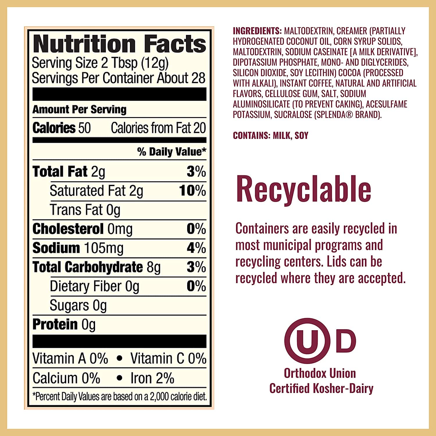 Q: Can I use Hills Bros. Instant Cappuccino Mix as a coffee creamer?A: Absolutely! The Hills Bros. Instant Cappuccino Mix can be used as a coffee creamer. Just add the mix to your brewed coffee to enhance its flavor with a delicious frothy texture.