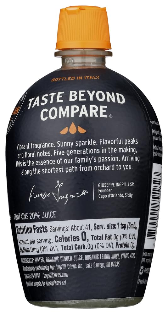 Q: What is Ingrilli Organic Ginger Squeeze Blend made from?A: Ingrilli Organic Ginger Squeeze Blend is made from premium organic Peruvian ginger juice and signature organic Sicilian lemon juice, ensuring a fresh and tangy flavor.