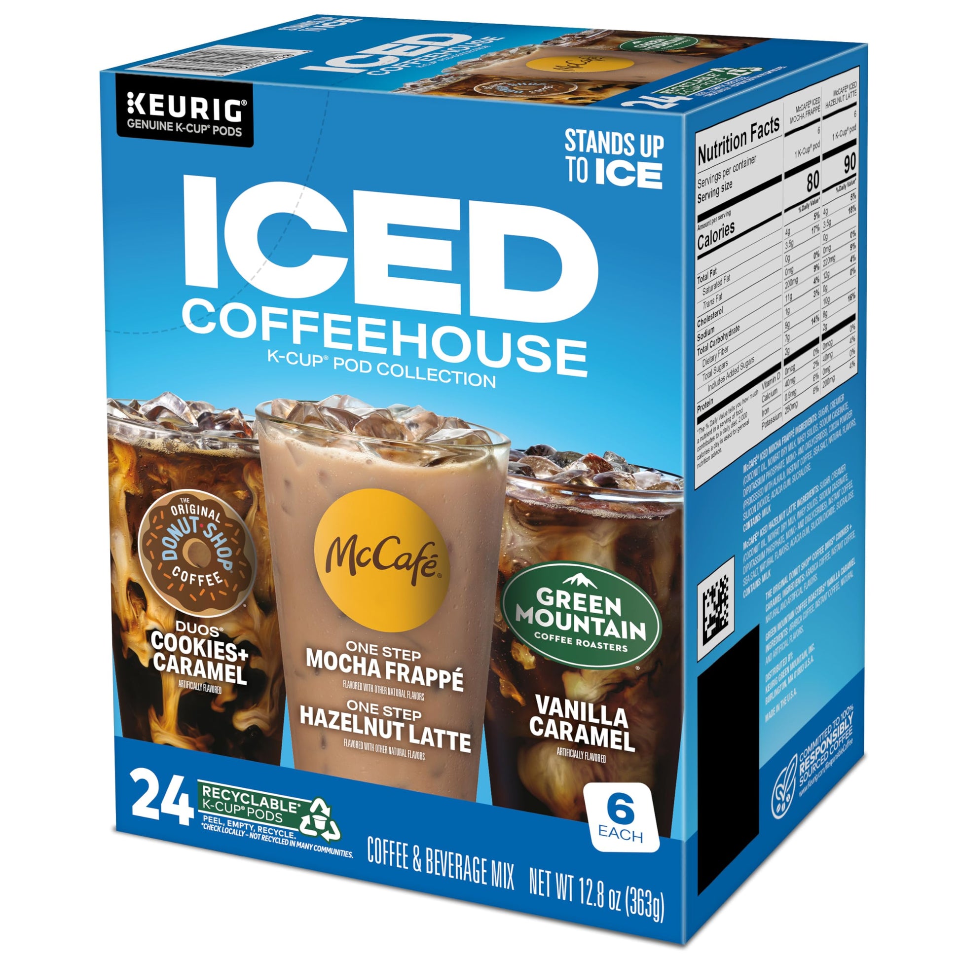 Q: How many cups of iced coffee can I make with one variety pack?A: The Keurig Iced Coffee Variety Pack contains 24 K-Cup pods, allowing you to brew up to 24 cups of delicious iced coffee.